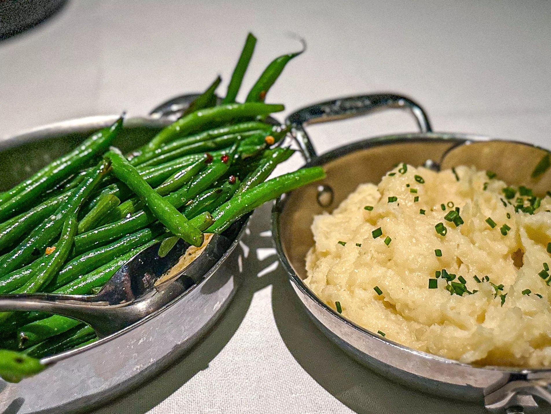 Haricot verts and potato purée are a couple of the accompaniments available.