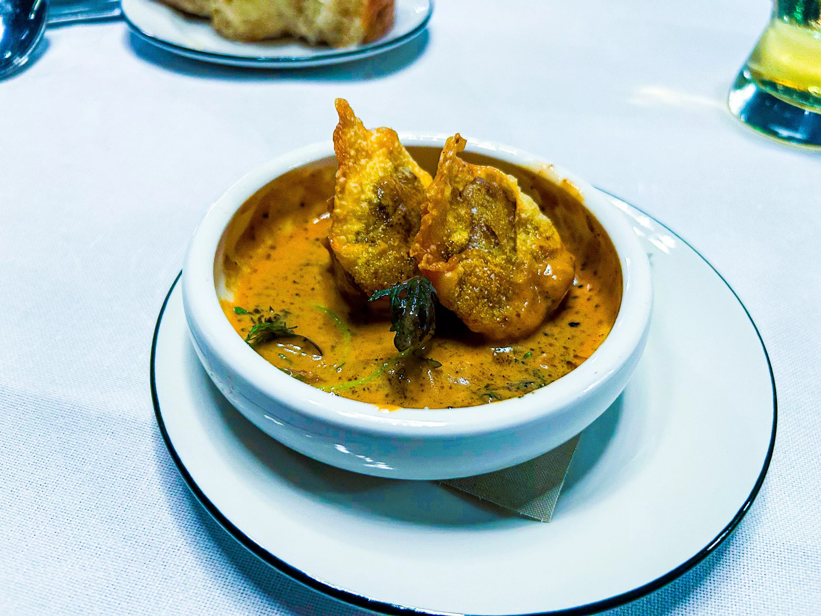 After, we were seated in a semi-private booth in the dining room, framed by dark curtains and a chandelier above the table. Servers buzzed around the room skillfully, sporting white tuxedo jackets that added to the ambiance.