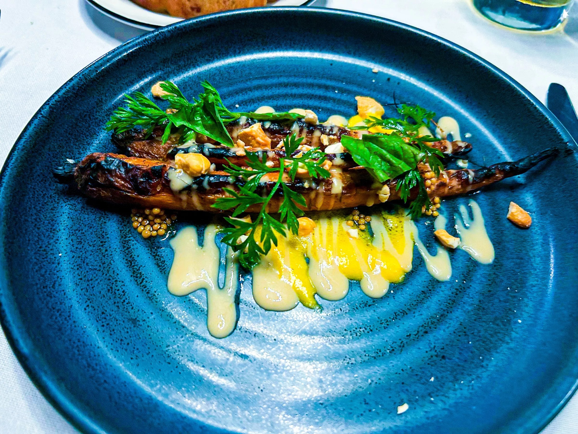 Next came a couple of vegetable courses. Smoked beets with kale and shaved goat cheese were a nice change of pace. Charred carrots with mustard seeds and cashews came quickly afterward. This was the part of the meal when we realized we might need to leave a little on the plate so we could fully enjoy the steak.