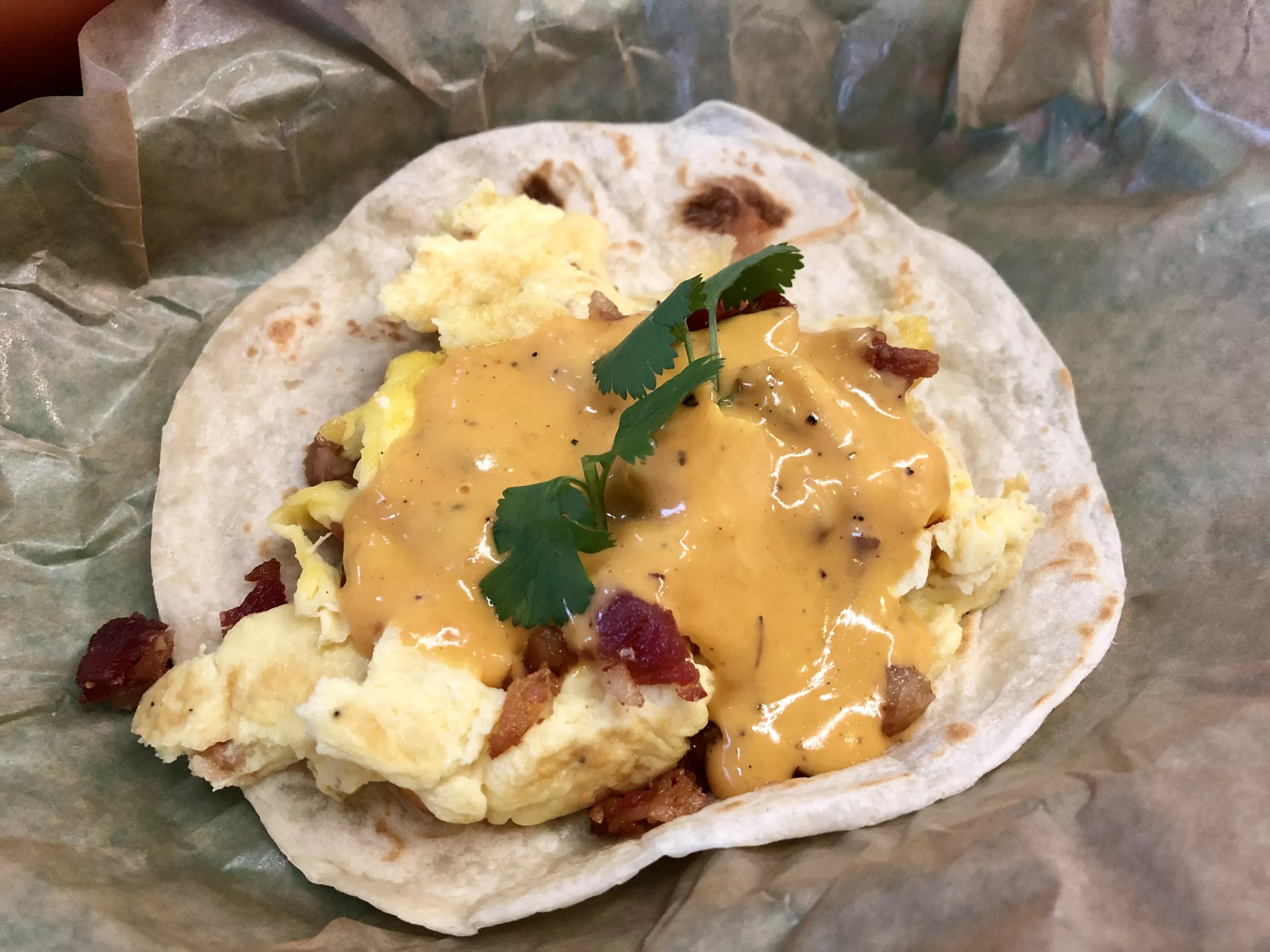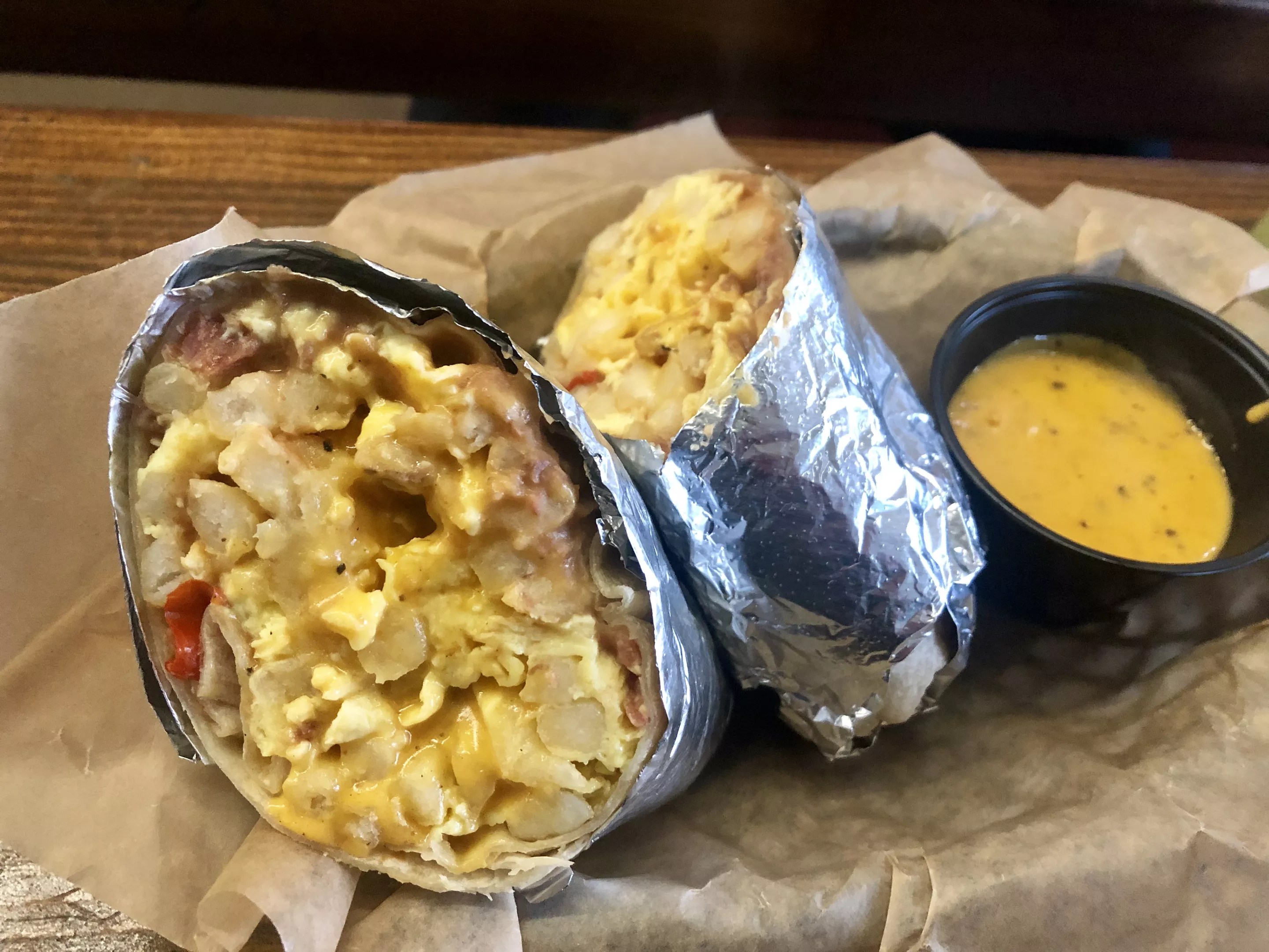 The breakfast burrito is best when dunked in massive amounts of queso.