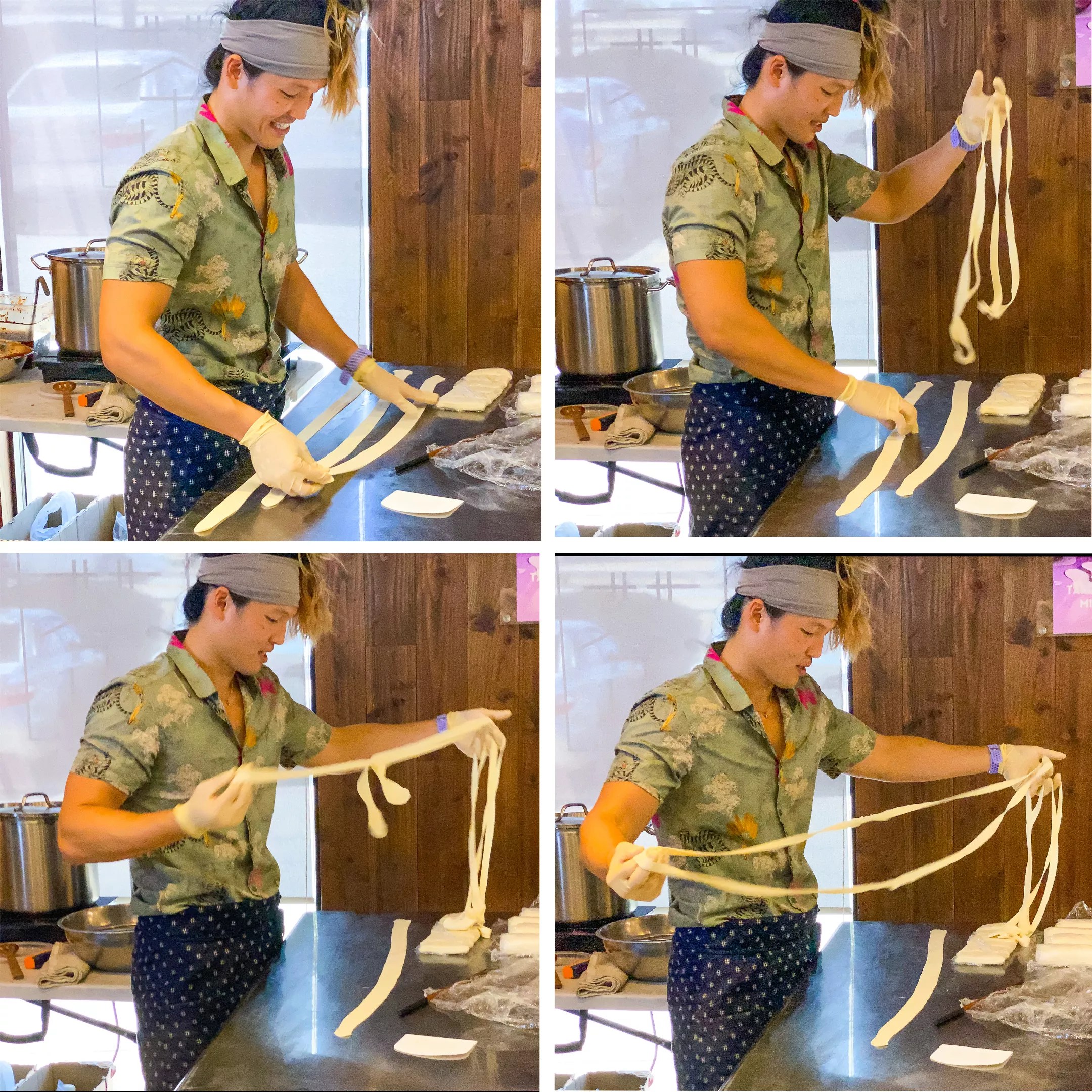 Thomas Gu hand-pulling some noodles at his TeaGu pop-up, and getting quite the workout. Dinner and a show!