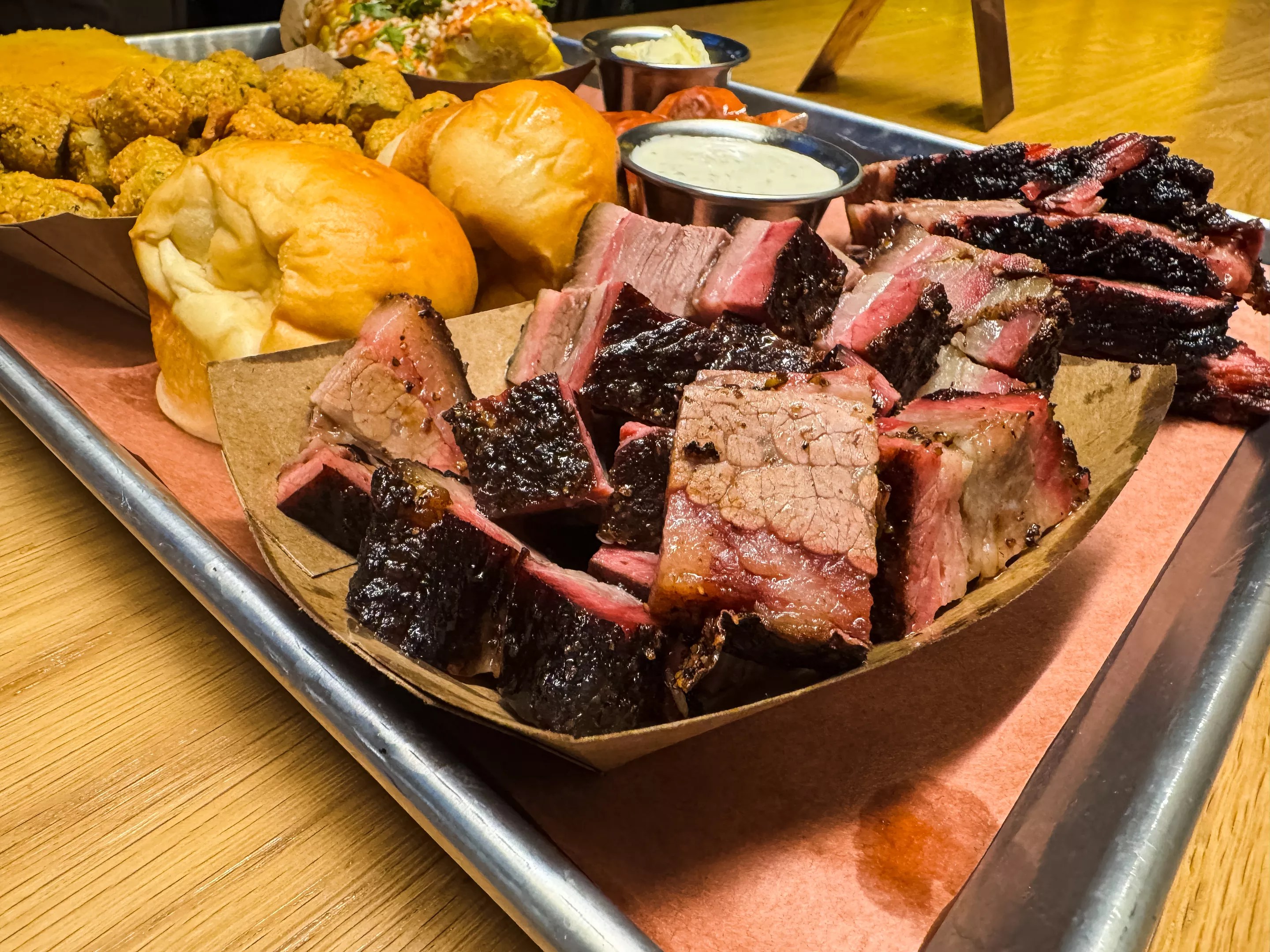 We rounded out our tray with on-the-cob elote ($5), and a couple of iced teas. Gone are the days when barbecue used to be a relatively modest meal; our tray of goodness for two people ran us $77 before tax and tip, although in fairness, we over-ordered on the meats for two people, and took home quite a few leftovers. But there’s a lot to be said for getting barbecue on a Friday night with no wait, and that’s a privilege worth paying for. Ten50’s new spot also sports a full bar, adding to the appeal.