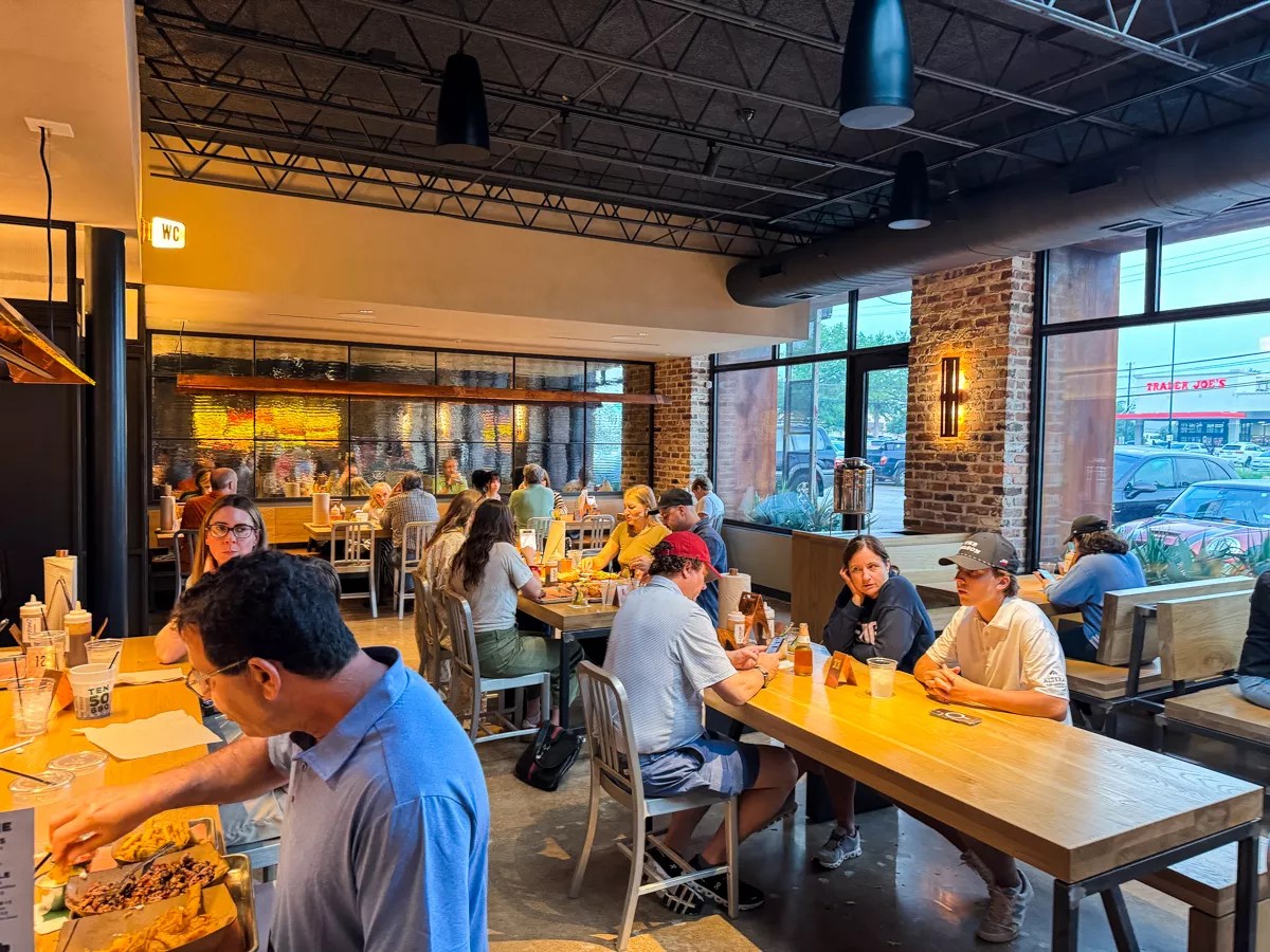 Our elote corn on the cob was delicious, with a single order sized to share, but we wished there was more of the chipotle sauce on all sides of the corn cob. Ten50’s okra is still a must-order, but ours arrived somewhere just above tepid, as if it had been sitting for some time before landing on our tray. We’ll chalk this up to a busy Friday night and some first-week kinks, as it took nearly 15 minutes for our tray of food to arrive after we ordered.