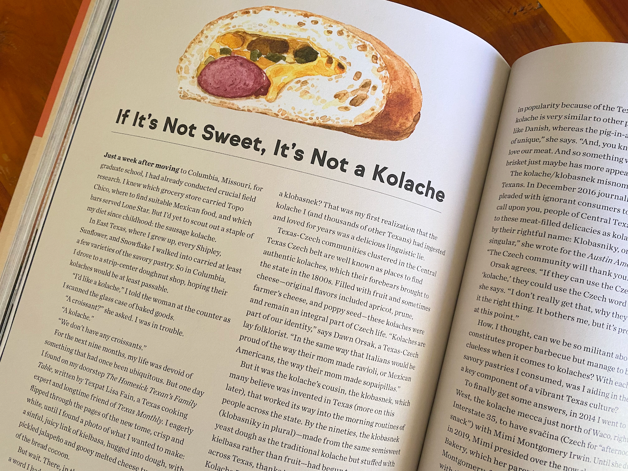 There are also some long-form love letters and odes that hit the spot. Personal favorites: “If It’s Not Sweet, It’s Not a Kolache” and “In Defense of Just Eating Your Dang Thanksgiving Dinner at Luby’s.” Done that.