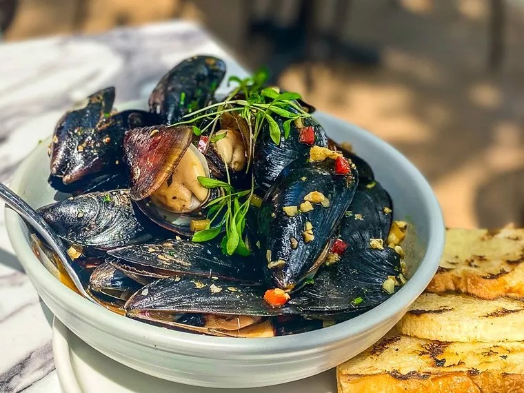 Spicy Thai-style mussels with grilled bread to sop a rich broth.