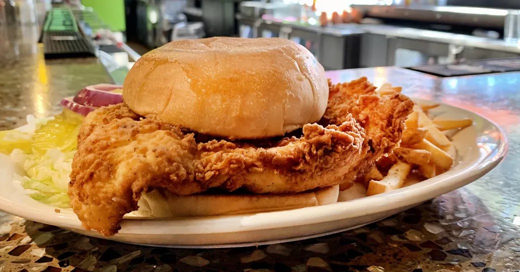 The pickle-brined and fried chicken sandwich at Cedar Springs’ Roy G’s.