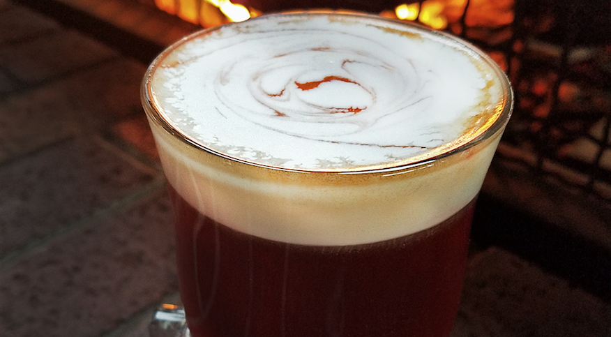 One of the quintessential hot cocktails, the history of this eye-opening treat started at a restaurant at an airbase in Foynes, Ireland, in 1942 when Joe Sheridan first whipped up this grog using whiskey, coffee and cream to help some weary travelers get over their grogginess. The key to a great Irish coffee is good coffee, great whiskey and perfectly whipped cream, but Whiskey Cake adds a twist with a bit of cinnamon simple syrup and a dash of bitters.