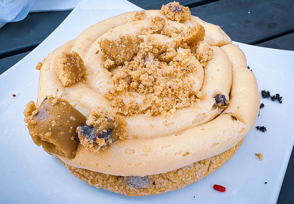 This was the best cookie by far and the only one we wouldn’t label as too sweet for its own good, or ours. The soft cinnamon cookie base would’ve been delicious on its own. It was Crumbl-ified with a drizzle of white frosting and more cookie crumbs. We could see this one at the State Fair. Could the Kardashians be the new Nevins?
