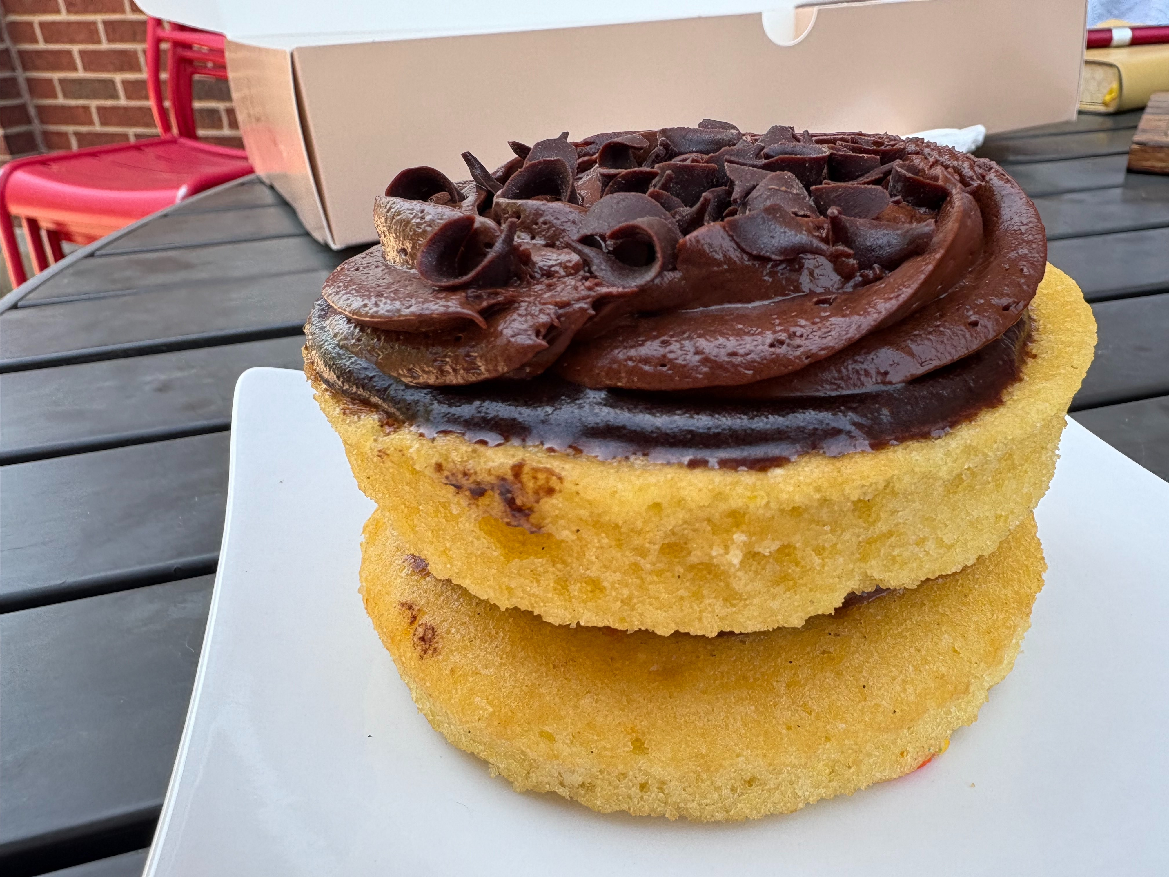 We saved the most expensive for last. Coming in at $6.98 before tax, Kourtney’s flourless chocolate cake is served in a small tin and topped with a couple of raspberries. If we weren’t briefed beforehand, we wouldn’t have been able to tell the cake was flourless. This one tastes like something you’d find at a cute bakery as opposed to a cultural and financial juggernaut like Crumbl. The berries were amazing as the only fresh thing we’d eaten in a while.