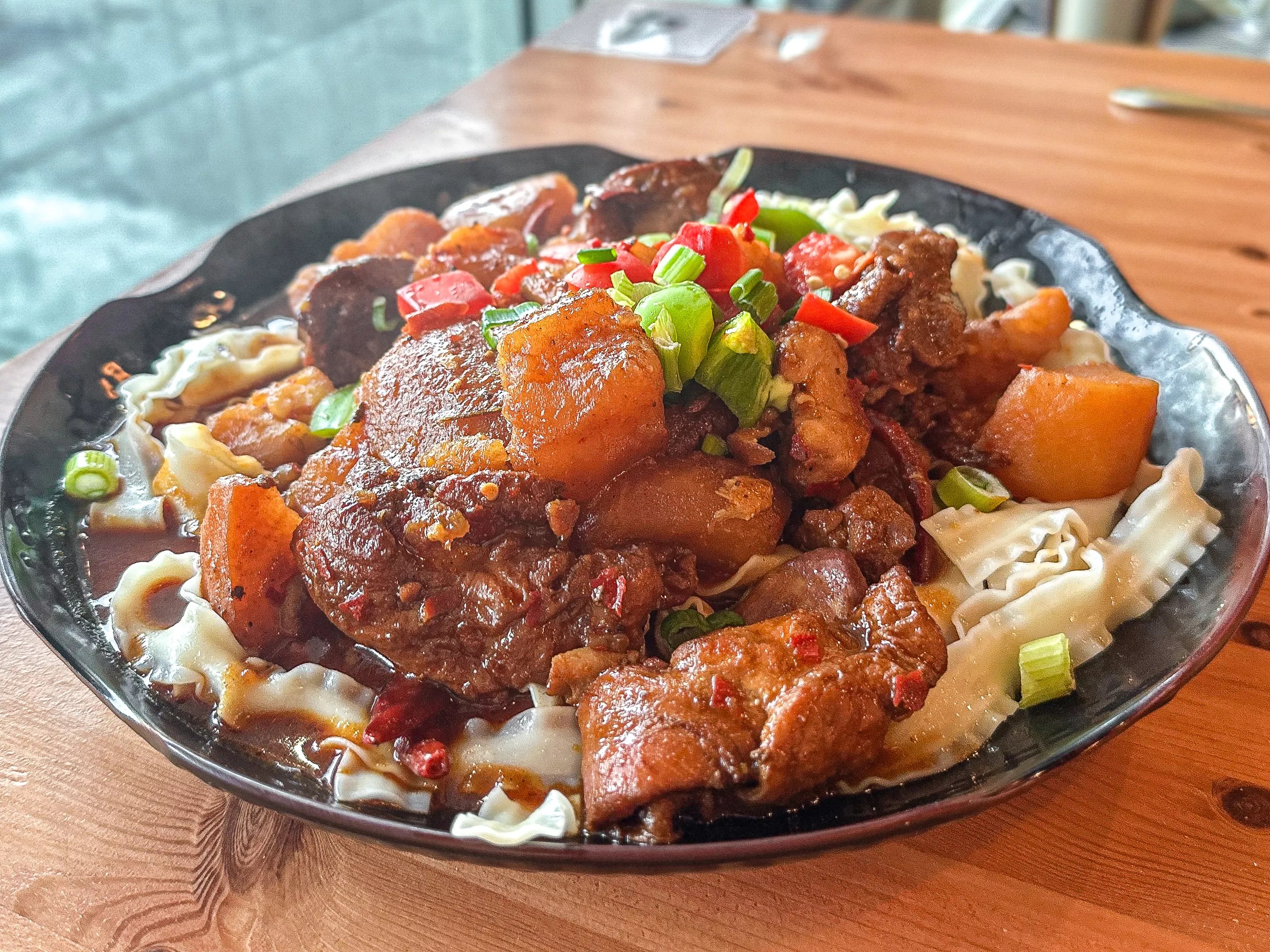 Turan Uyghur Kitchen, 2001 Coit Road, Plano Turan Uyghur Kitchen serves Uyghur cuisine from the northwest region of China. The star of the menu is a big plate of chicken, which can be ordered as a small or large portion, though the small easily feeds four people. Braised bone-in chicken stew served on a bed of flat noodles and piled high with potatoes, spring onions, garlic, red and green bell peppers with a touch of star anise and cinnamon complete this unique offering. It’s full of rich and unique savory flavors deep in character; we had plenty of leftovers, and the wonderful sauce on rice the next day was heavenly as well. – Hank Vaughn