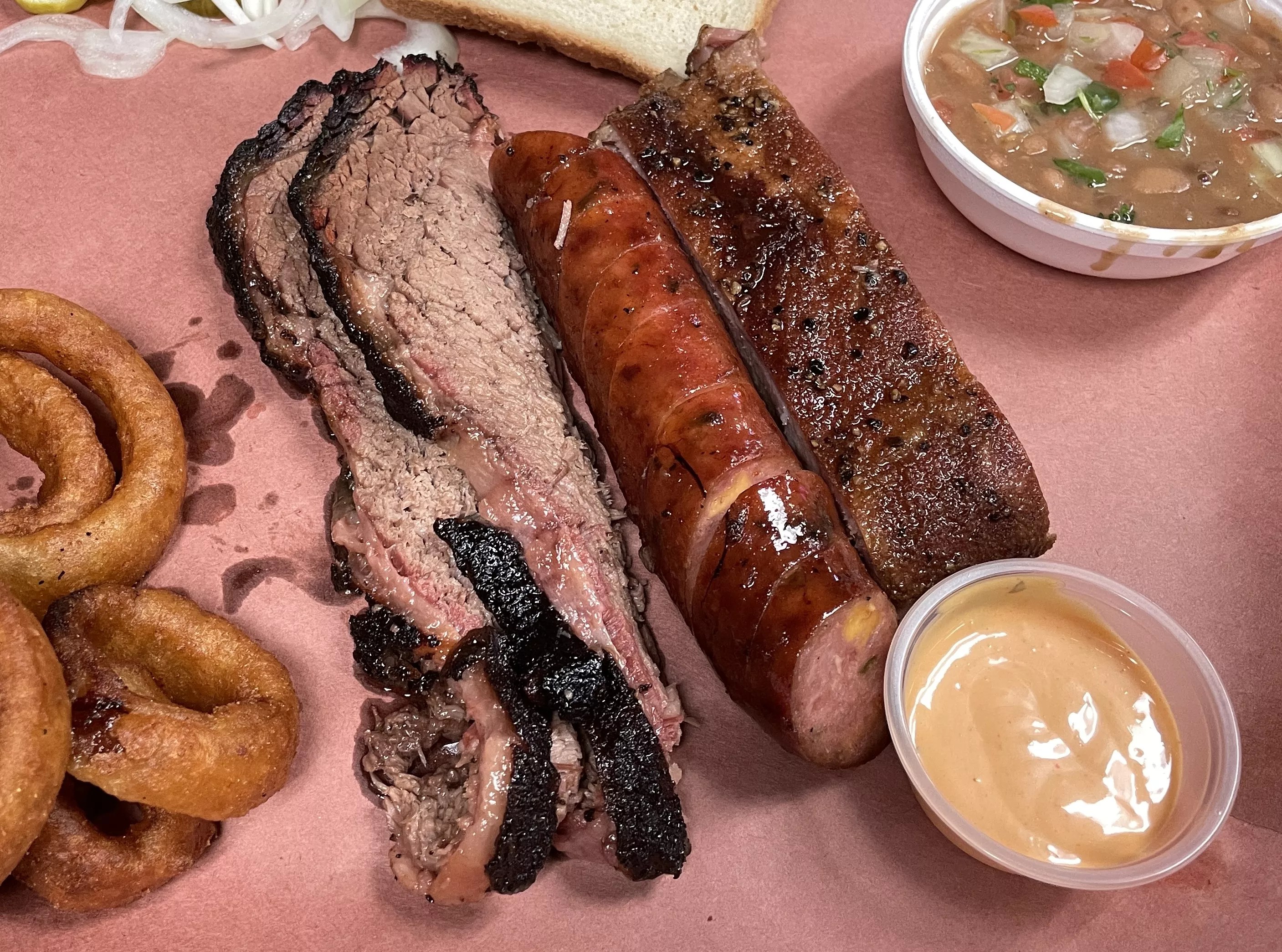 The three meat platter at Sullivan’s BBQ.