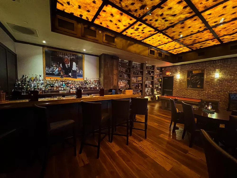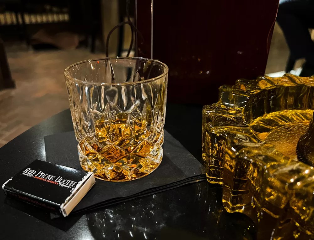 Red Phone Booth offers a cigar lounge experience, and higher membership levels ($1,000 a year) include humidified lockers to store your cigar stash. While the Red Phone Booth has a ventilation system that purportedly scrubs the air every two minutes of cigar smoke, the smell of smoke at the main bar was still quite strong (although it didn’t seem to stick to our clothes after we left). There’s a kitchen that prepares small bites, but we had come from an earlier dinner, so we make no judgements on the offerings.