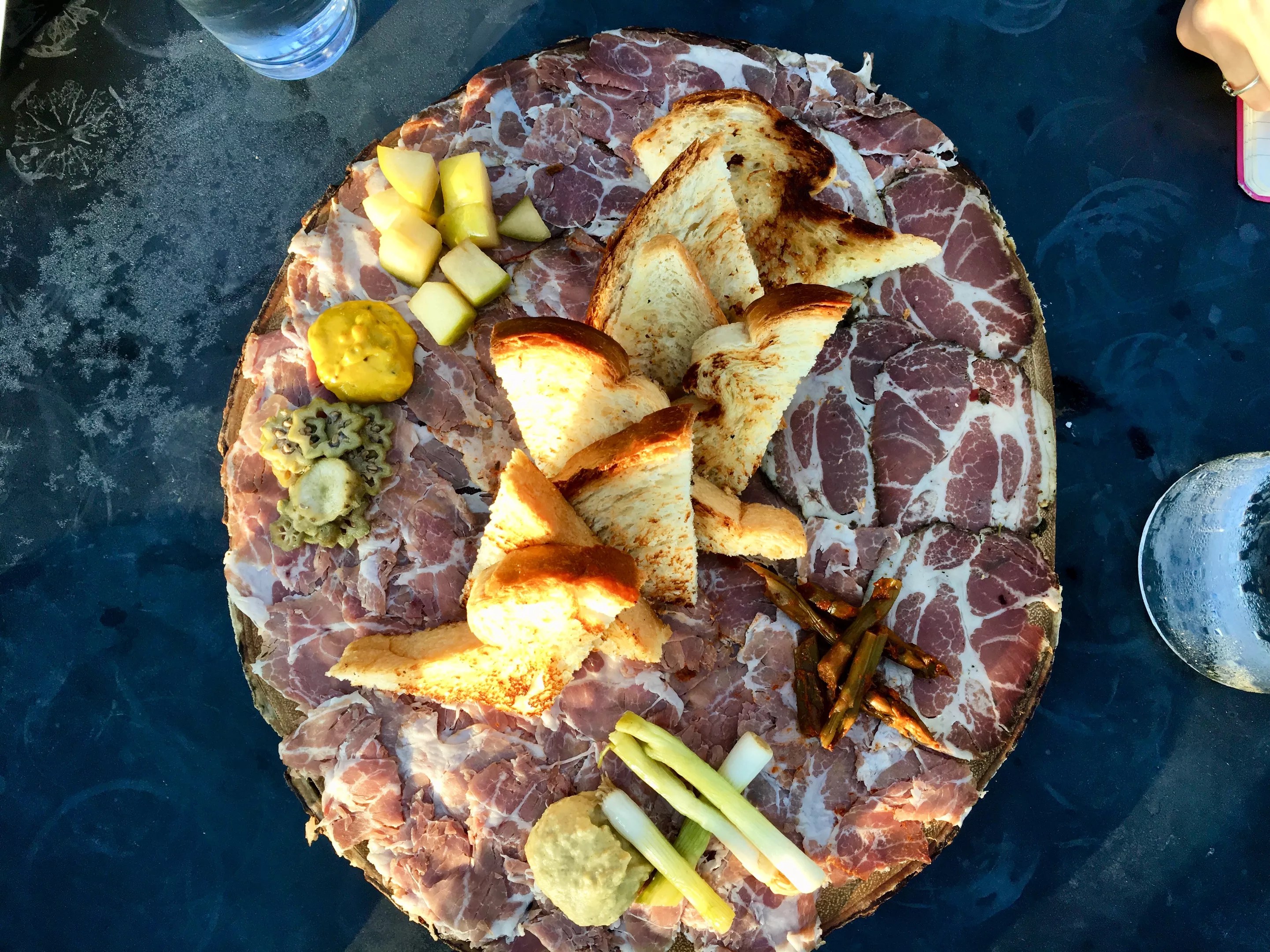 Sure, you could get a pizza the size of a car door at Serious Pizza. That’s fine. Another, mind-bendingly good option is the capicola trio at Harlowe MXM. It’s a slice of a tree, wallpapered with cured pork, soft as linen and thin as air, the best Italian cold cuts you ever had. Pickles and house mustard add to the richness of the spicy pork, which melts in your mouth. It’s a shared plate that eats like a meal.