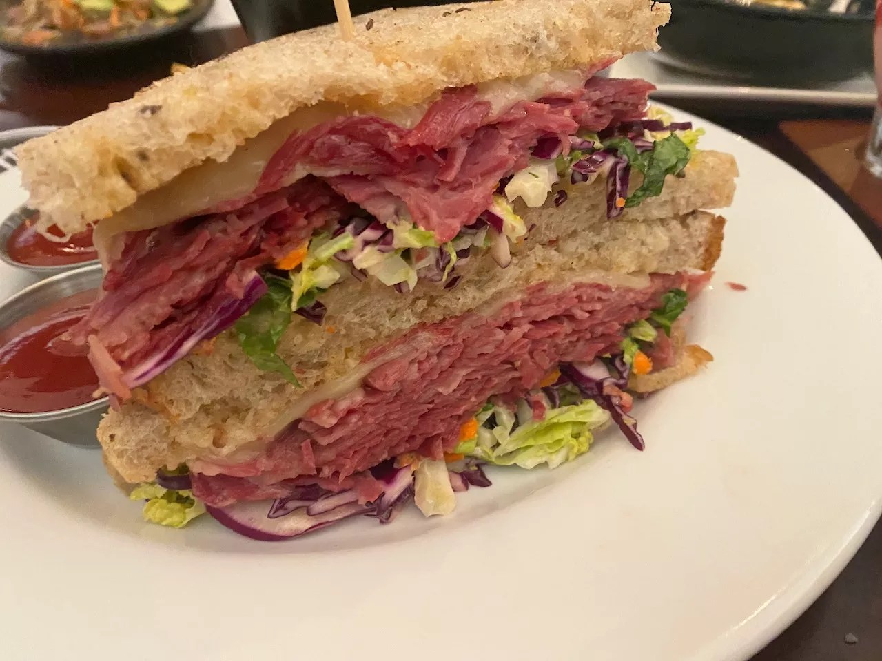 Before serving, thin slices of shaved corned beef are seared on the grill and topped with Swiss cheese. The final construction includes a house-made coleslaw with a house dressing called Louie. La Casita’s toasted seeded sourdough holds it all together. It’s a mountain of wonder and is one of the better sandwiches we’ve had in quite some time. And we pride ourselves on the number of sandwiches we eat.