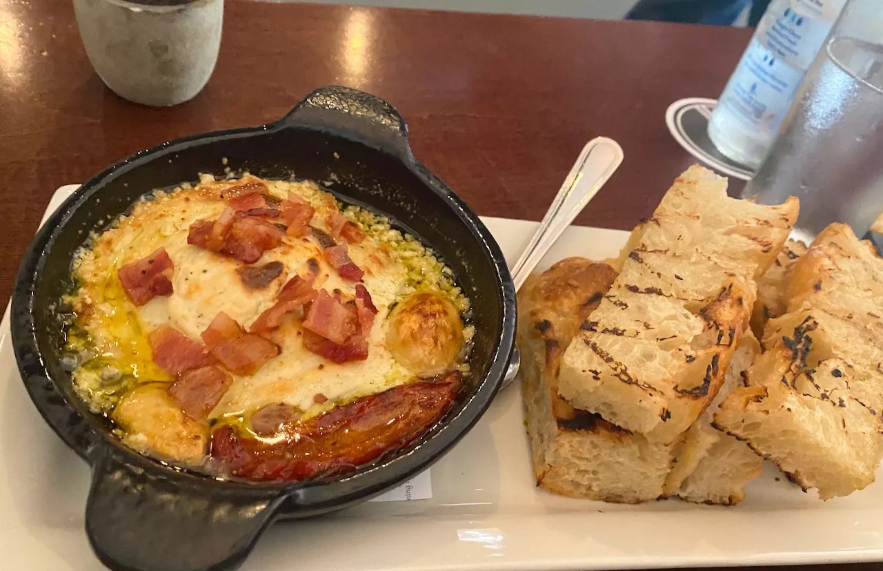 Be sure to get the blue cheese fondue. The idea may make you pause, but it turns out that melted and sizzling blue cheese is killer. The Fifth uses a blue cheese mousse, which is made with blue cheese crumbles mixed with heavy cream and cream cheese, toss it with a garlic puree then top it with Worcestershire. Then come well-roasted tomatoes and garlic cloves along with thick chunks of bacon. It’s served sizzling with a side of grilled focaccia from Richardson-based La Casita Bakeshop.