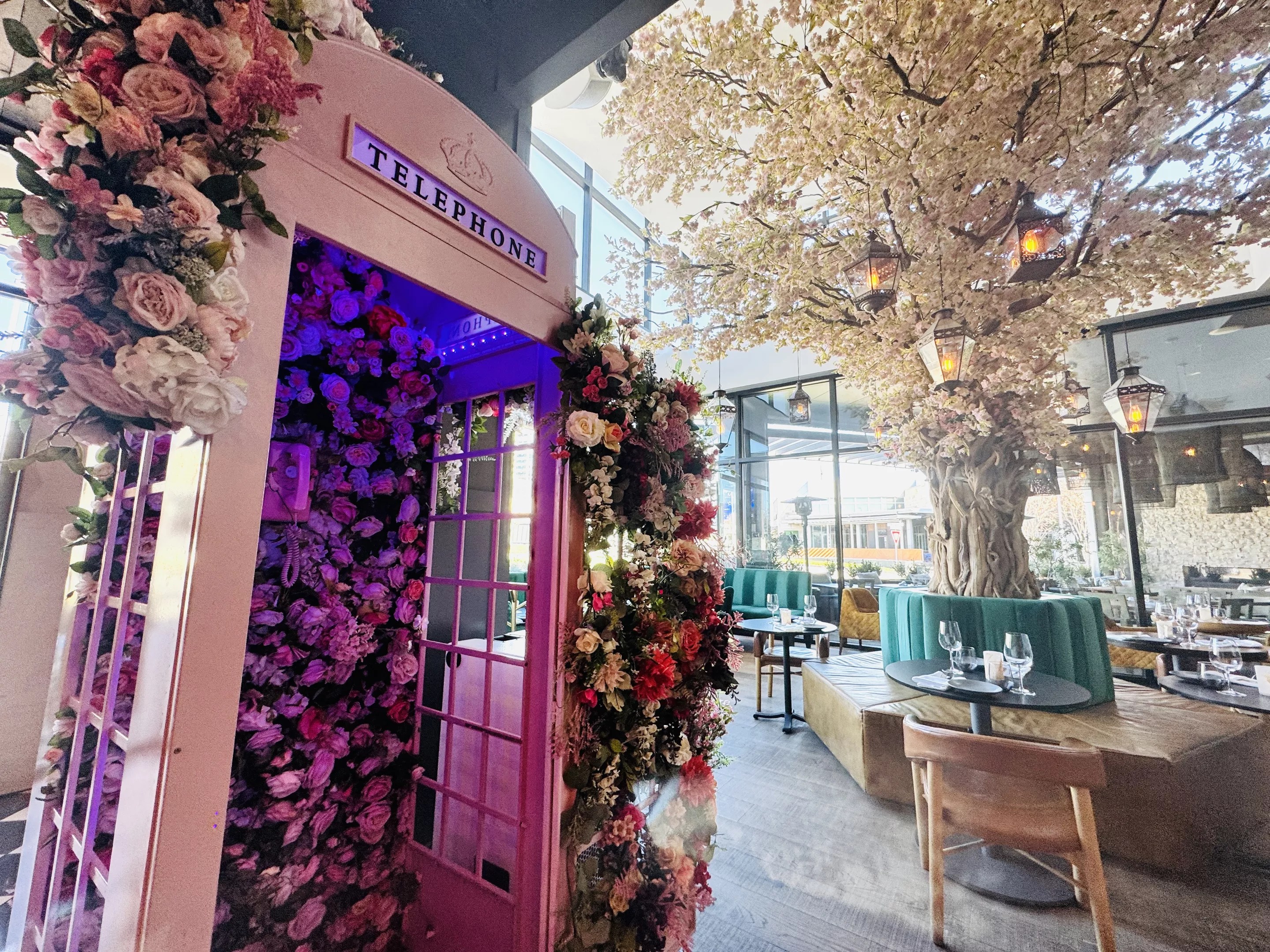 Forever fans of experiential entertainment, the interior design is perfectly curated – every nook and cranny an Instagram backdrop brought to life. A towering floral tree crafted from driftwood collected on the California beaches, a vintage phone booth and a gold swing offer photo ops at every turn, and a hand-painted mural by local artist Rita Viccari pays homage to their teenage daughter, Lilly.