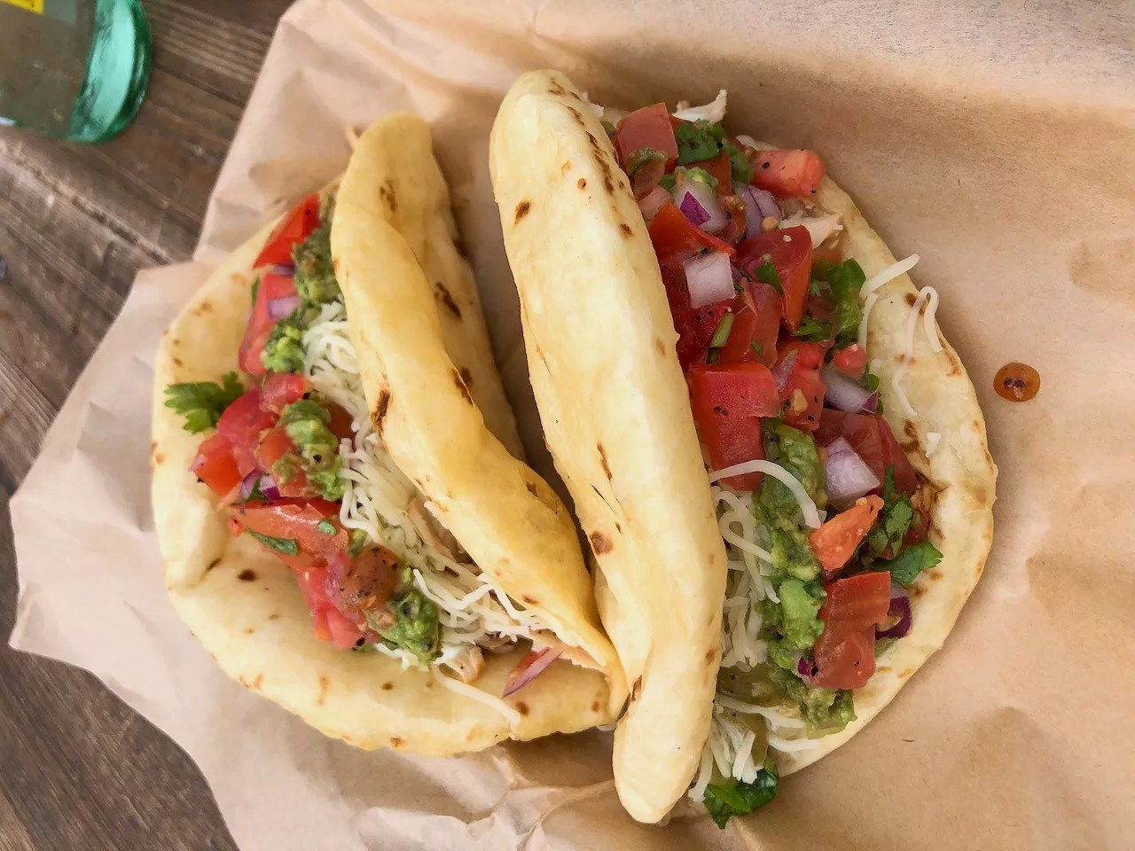The menu is mainly burgers and tacos. Burger options include a double bacon with cheese, green chili, egg, “Tex-Mex” (queso, pico and guacamole), and there’s a pulled pork sandwich. Tacos are ordered as singles, and you can choose from steak, chicken, pork or fried avocado. You can also get any of those as a bowl.