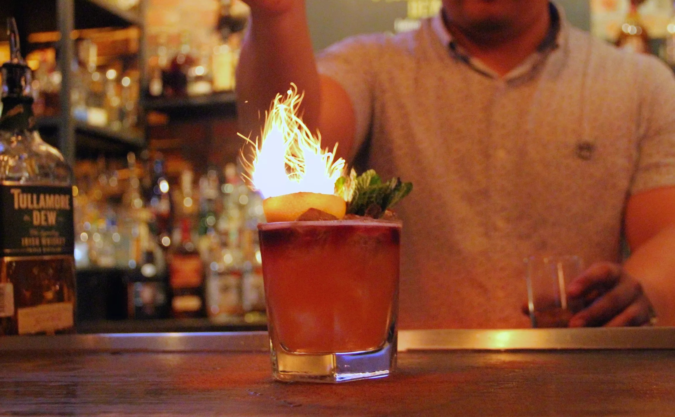 Adults have so few chances to do blatantly stupid things – run with scissors, play with fire, etc. So when a bar gives us the chance to tempt fate with an aggressively flaming garnish, we take it. The Standard Pour’s monthly feature for March, the Fire Dancer, is a drink with a bit of a show for just $10.