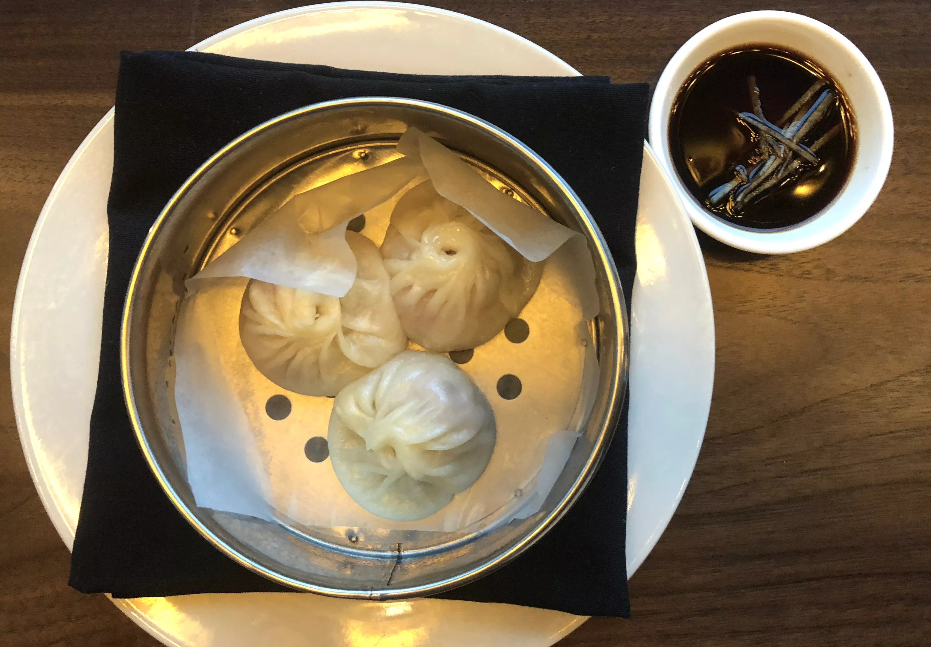 Chilled dan dan noodles ($12) are the highlight, coming out in a simple metal bowl and topped with (allegedly spicy) pork ragú, chili oil and crushed peanuts. As you mix the ingredients together with chopsticks, you’ll find these flavors hard to resist.