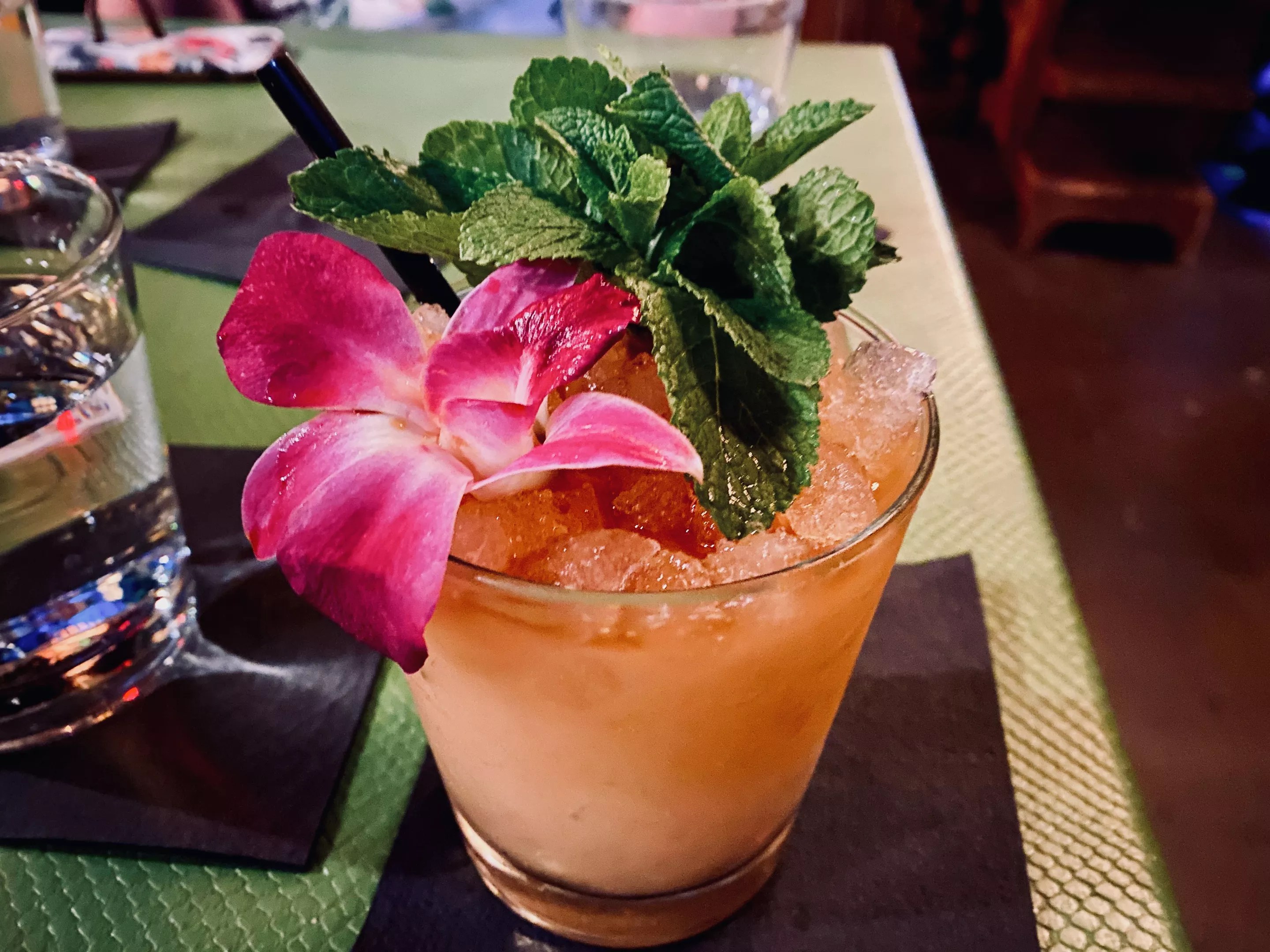 The cocktails alone are a big draw, obviously, being a Tiki lounge. I desperately need glasses and couldn’t read the drink menu on my phone, so I ordered the first thing I could read; a Bitter Truth of Mai Tai (why bitter truth stood out … I can’t say or see). Anyway, Swizzle has developed an ABV-equivalent for their drinks, designated with little spears next to each item, which I can only see now that I’m on a laptop.