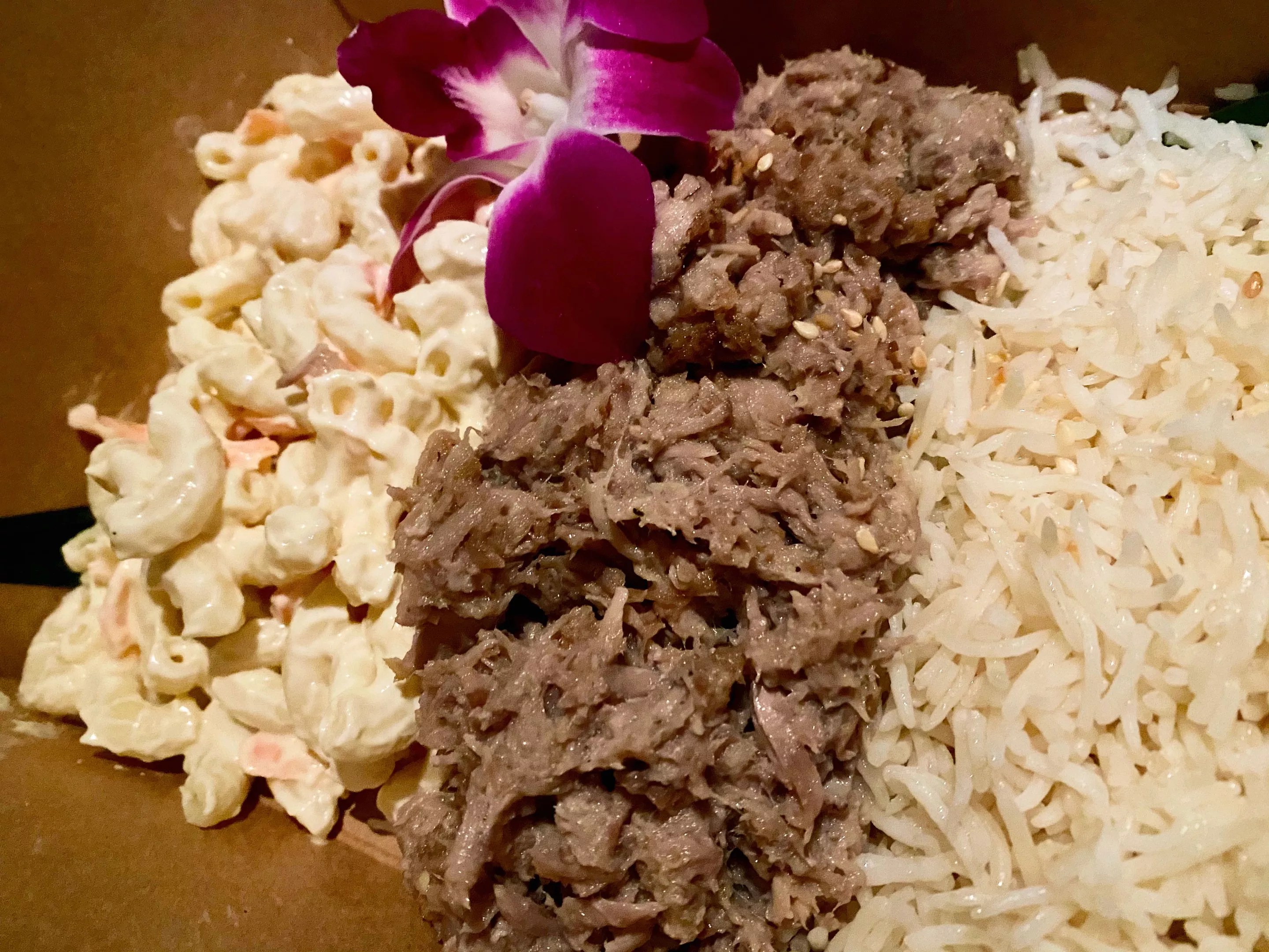 According to a 1999 article in the Honolulu Star-Bulletin, macaroni salad is the “holy trinity, the show horse in a trifecta. No self-respecting plate lunch is without it.” The piece goes on to explain the mayonnaise-ladened elbow pasta became a staple because it’s affordable and filling.