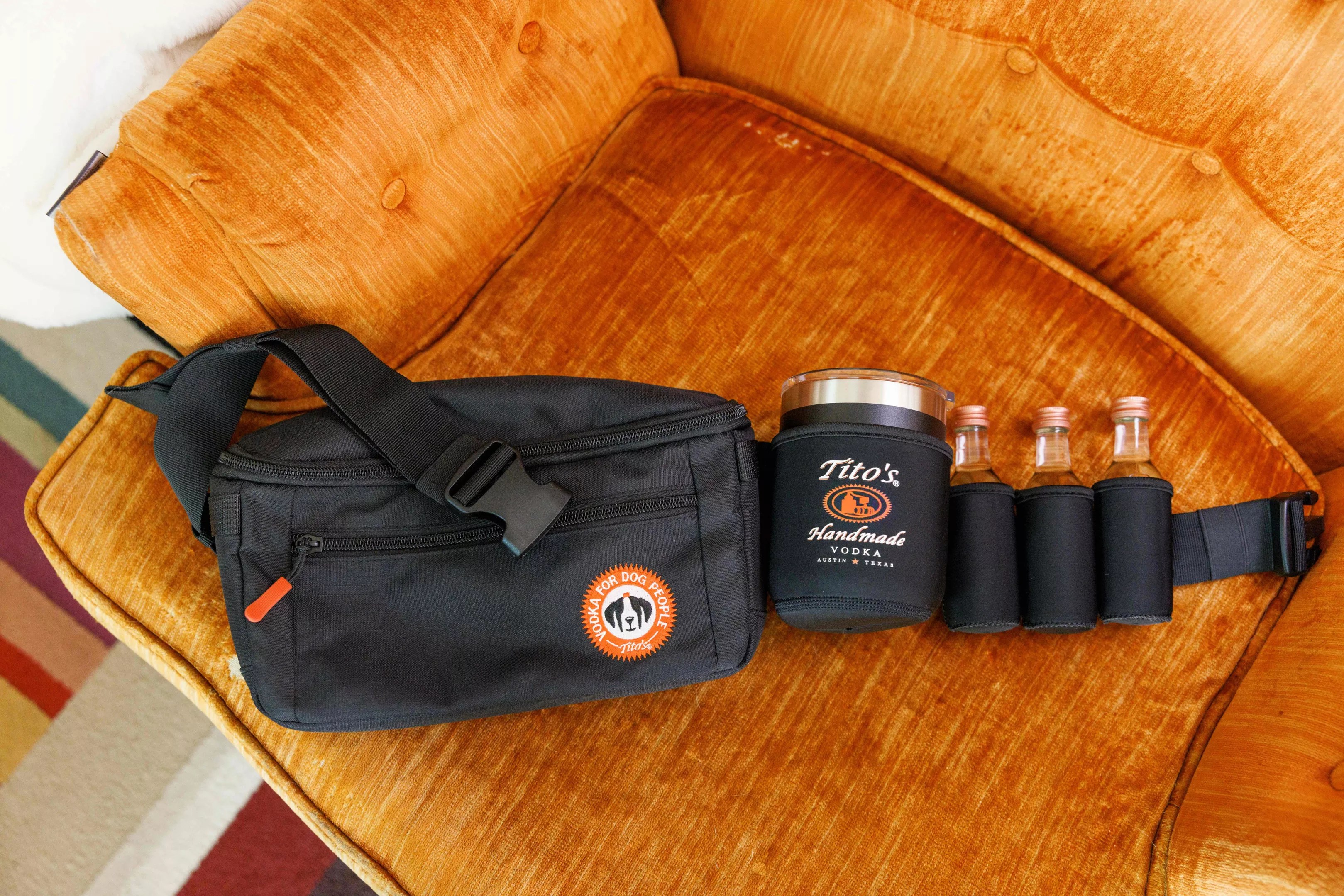 Tito’s Handmade Vodka has teamed up with BISSELL Pet Foundation for an exclusive fanny pack that holds everything needed for a drink while walking your best friend – a walktail. The setup includes a drink holder, mini bottles and a collapsible dog bowl (since puppy dogs get parched too).