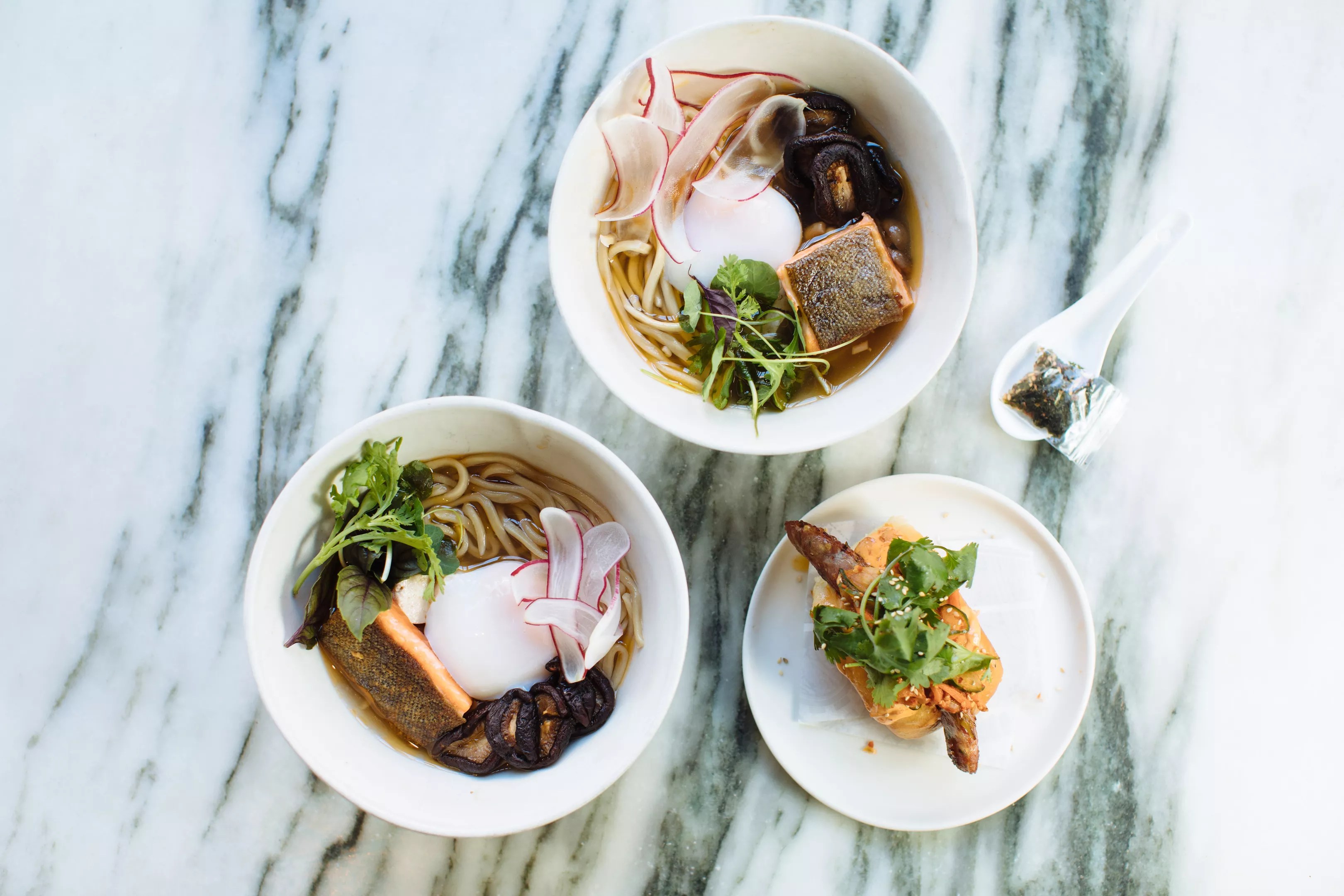 The inspiration for the ramen came from a mushroom consomme Tesar made while working at his previous restaurant, Spoon. His goal? Make the ramen light, delicate and fish-forward. His success in all three was apparent by the symphony of slurping heard throughout Top Knot.