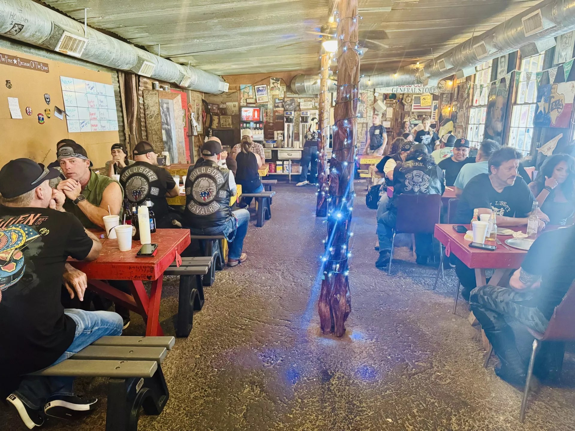 Our main reason for making the trek out here, however, was the 60-year-old Loco Coyote Grill. Seen on Chet Garner’s Emmy Award-winning Texas travel series, The Daytripper (you can watch the full Glen Rose episode here), this off-the-beaten-path gem oozes serious character. As we were driving in (Coyote Grill sits in a field in the middle of nowhere), directly behind us were a dozen or so bikers who were heading to Coyote Grill. At least another 20 bikers were already seated when we entered, all donning their trademark leather vests complete with patches and biker club affiliations. It felt like we were extras in a Sons of Anarchy scene.