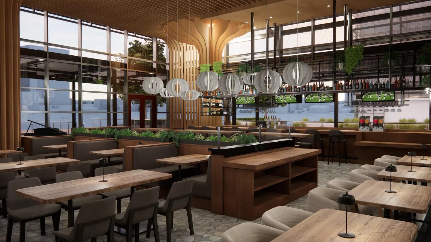 Urban Italia will be a 5,500-square-foot restaurant that can seat 250 guests inside or on the patio. The space was designed by Fusion AE, a local design firm, and aims for a bright, airy feel with natural wood, an indoor-outdoor bar, and a spacious patio.