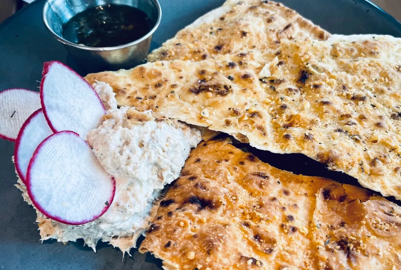 The smoked tuna appetizer comes with a side of candied jalapeños.