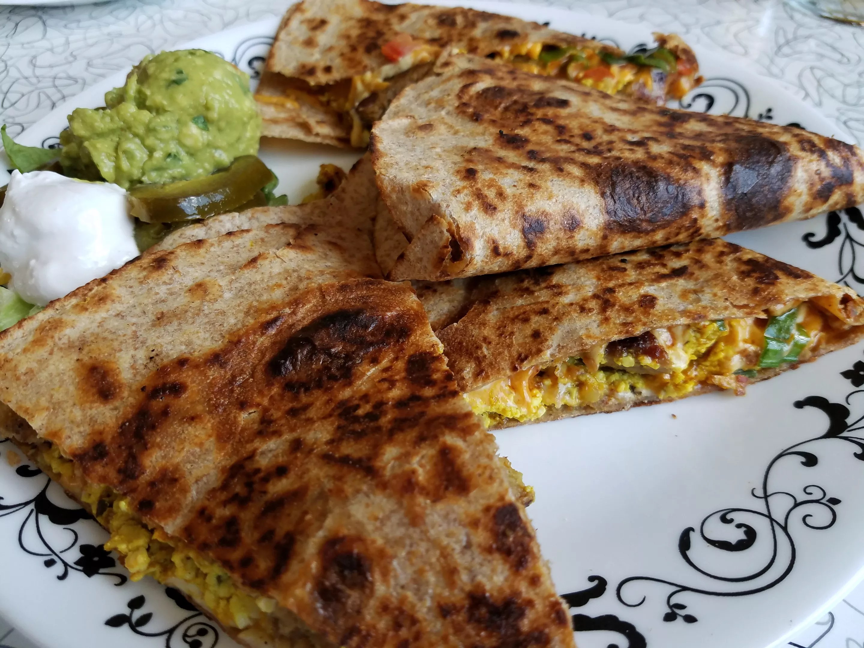 Spiral Diner elevates the humble scramble to new, cumin-scented heights. The tofu is scrambled with a generous hand of spices, bits of potato and other veggies, which provide a nice textural breath between the monotone mouth-feel afforded by the tofu. One dish that brings the scramble into its fold is the breakfast quesadilla ($10.95). Here you’ll find the scramble tucked into a whole-wheat tortilla along with a smattering of vegetables and peppers, vegan sausage and Daiya cheese. Daiya cheese is akin to American in that it has that distinctly silken texture when melted that can only arise from being highly processed. The overall effect is a quesadilla that is exceedingly rich yet virtuous.