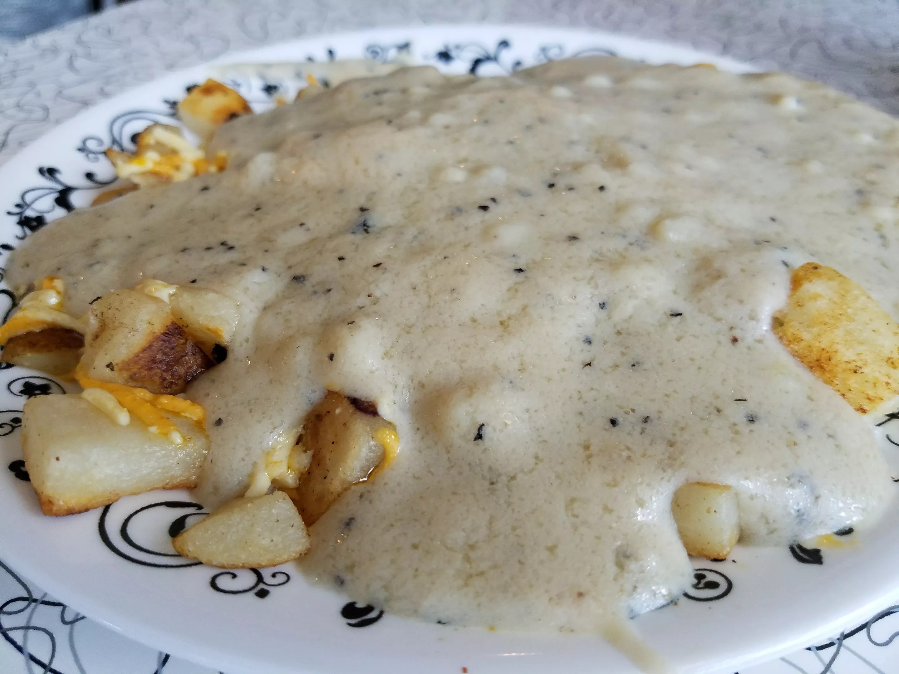 The gravy captures that creamy, rich, artery-painting quality of traditional gravy just the same. It’s particularly enjoyable when served on a couple of the diner’s sky-high biscuits, which manage both a hearty chew and a delicate crumb. Paired with a couple of herbaceous and toothsome sausages with a bit of scramble (the Lumberjack, $9.95), this is the kind of food that, despite its ingredient list, doesn’t shy far from grandma’s table.