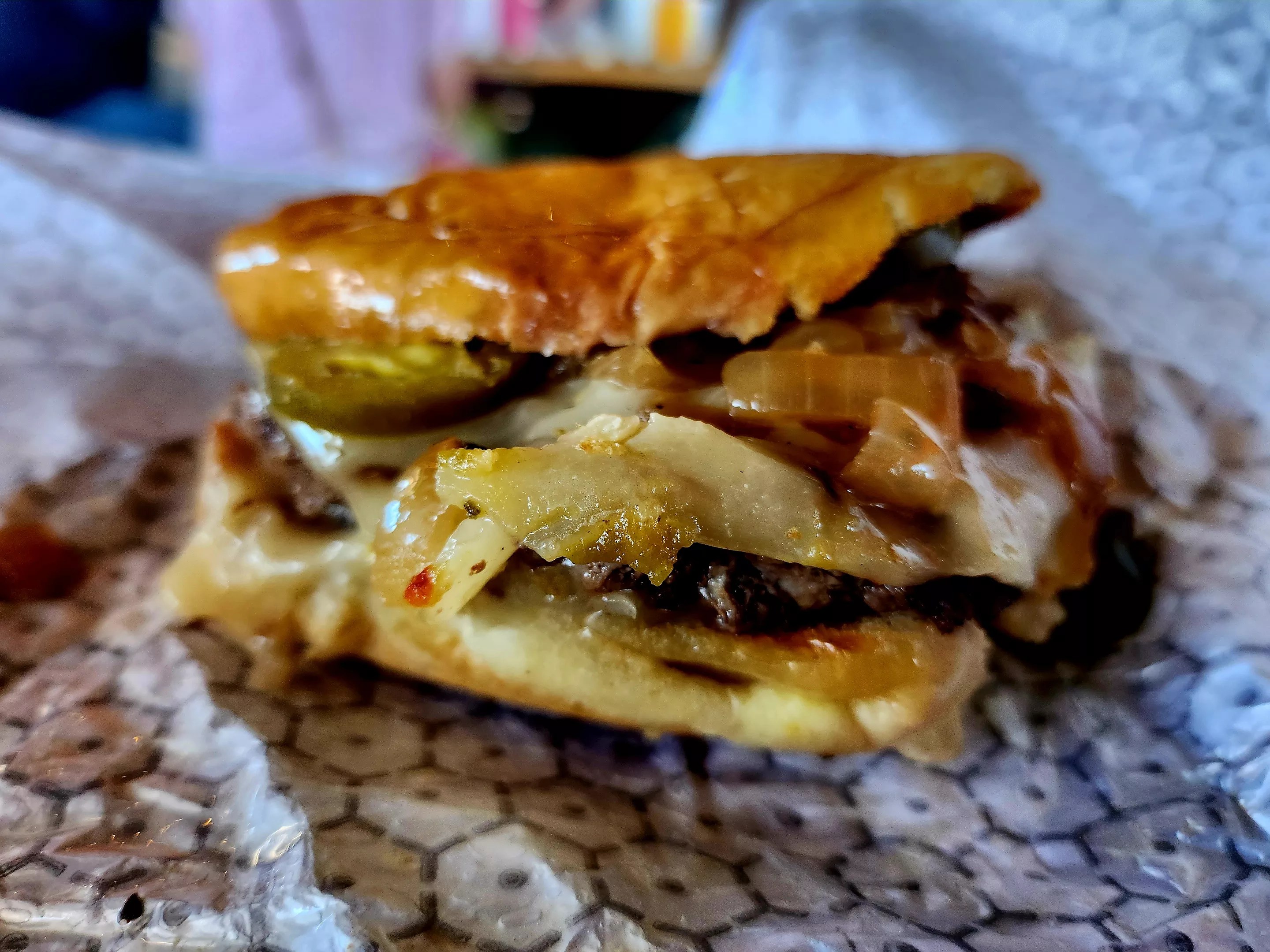 Go for the Southwest ($11.99 for the combo meal). Double-patties with melted pepper Jack, onions and jalapeños, topped with Yellowbird serrano sauce. A subtle sweetness from the Yellowbird sauce works well with the spice level, which is just right. Good burger high on flavor.