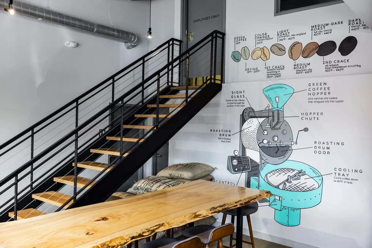 One of White Rhino’s murals showcases how the magic happens inside their custom roaster.