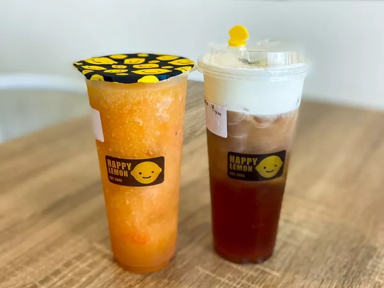 Happy Lemon, a Taiwan-based boba tea company, is famous for bubble teas, citrusy teas and slushies, as well as bubble waffles and salted cheese drinks. The menu is extensive and complicated for someone with no experience in cheese drinks, ice and sugar ratios, or boba, but in our experience the staff is super helpful with explaining it. We started with black tea with salted cheese. The verdict? This was some of the best stuff sipped in a long time. The salted cheese sat atop the tea much like whipped cream would, or a foam, and had a similar texture. We alternated between just sucking it down with the straw at the bottom of the glass, and moving the straw within the delightful cheese foam to get an extremely satisfying mixture of the tea and cheese. It was surprising in a good way. Other salted cheese options include green tea, chocolate smoothie, roast tea, matcha latter, dragon fruit and mango. Be sure to save room (or make a run for) their bubble waffles. We selected two original (plain not flavored batter) waffles, one with and one without boba, and opted for a puff cream dipping sauce. Oh man. This was so good we immediately regretted not ordering more (other flavors/fillings include matcha, chocolate, red bean, or Oreo). The waffles were perfectly cooked and warm, not too sweet, with a delicate texture. The air pocket bubbles presented a lovely mouth feel as well as the perfect location to house the boba. They also offer a slew of other beverages including milk teas, fruit teas, smoothies, yakult and classic brewed teas. They have a large list of toppings that can be added to any of the teas such as boba, grass jelly, red bean, taro balls, puff cream or passion fruit seeds as well.