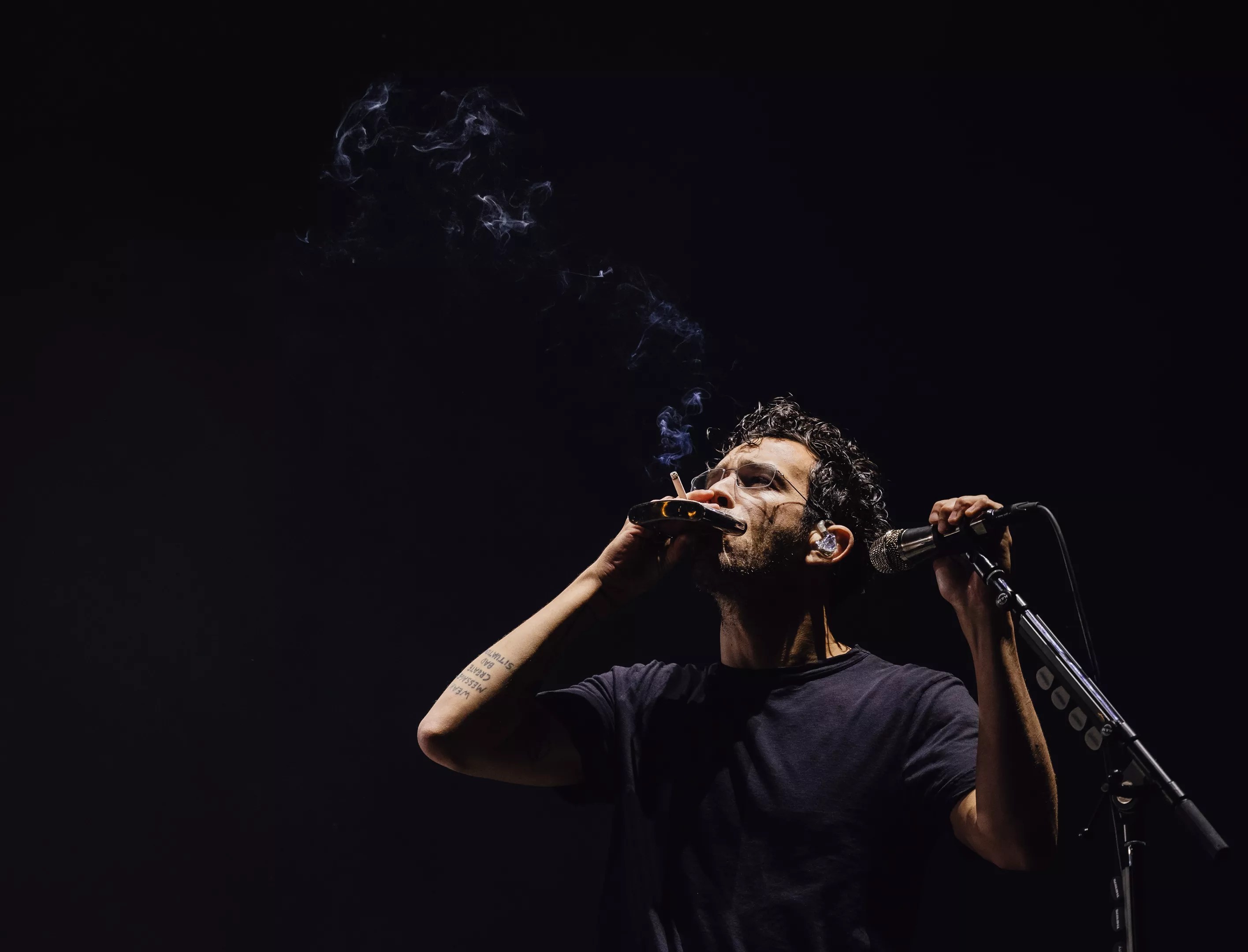 Matty Healy could be heard sluring his words. Is he hamming it up or actually hammered?