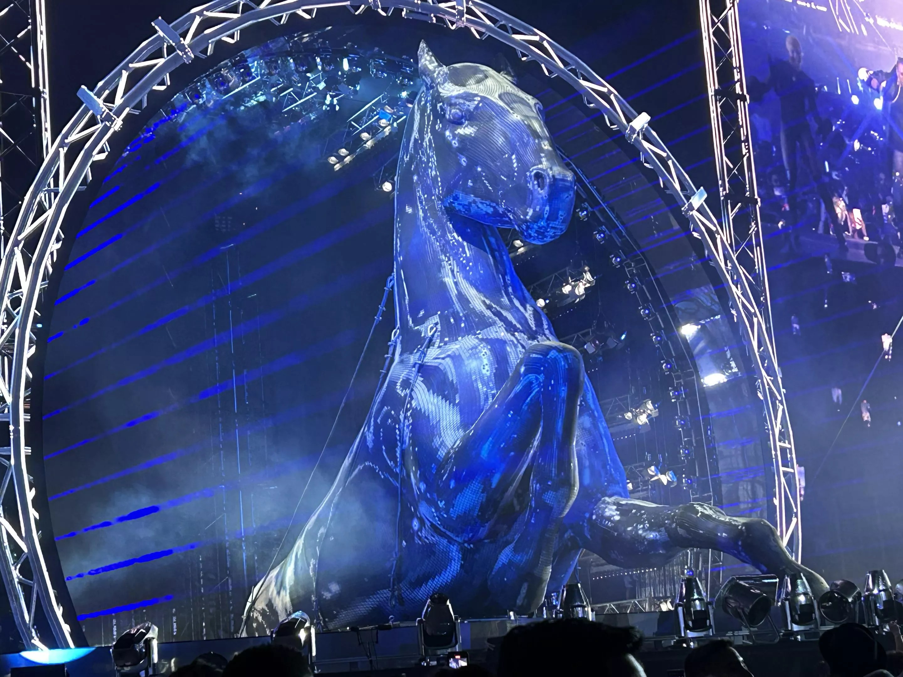 A runtime of three hours made the 1.5-hour delayed start well worth it. On the RENAISSANCE World Tour, Beyoncé has delivered production values beyond our wildest dreams, including (but hardly limited to) the mind-blowing element of costuming herself AND her dancers with arguably the year’s most revered achievement in fashion design: the geometric silhouettes of Japanese brand Anrealage by Kunihiko Morinaga, made from UV-activated color-changing fibers that lit up Paris Fashion Week and the internet this spring. The magnitude of being in the same room as such iconic custom couture was by no means lost on such a stylishly outfitted audience.