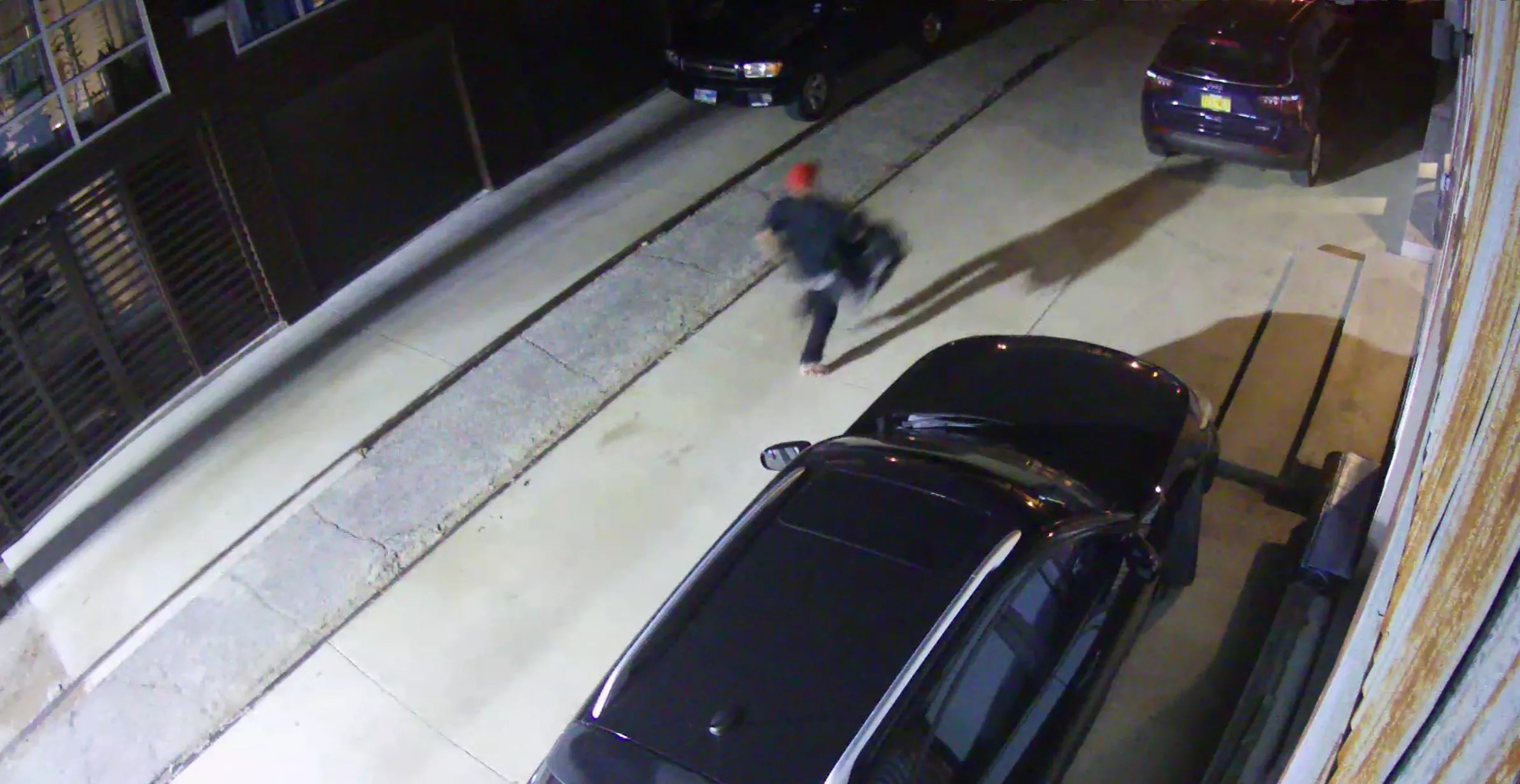 Security cameras located around the area by neighboring businesses caught footage of the man who robbed the band’s van and the getaway vehicle.