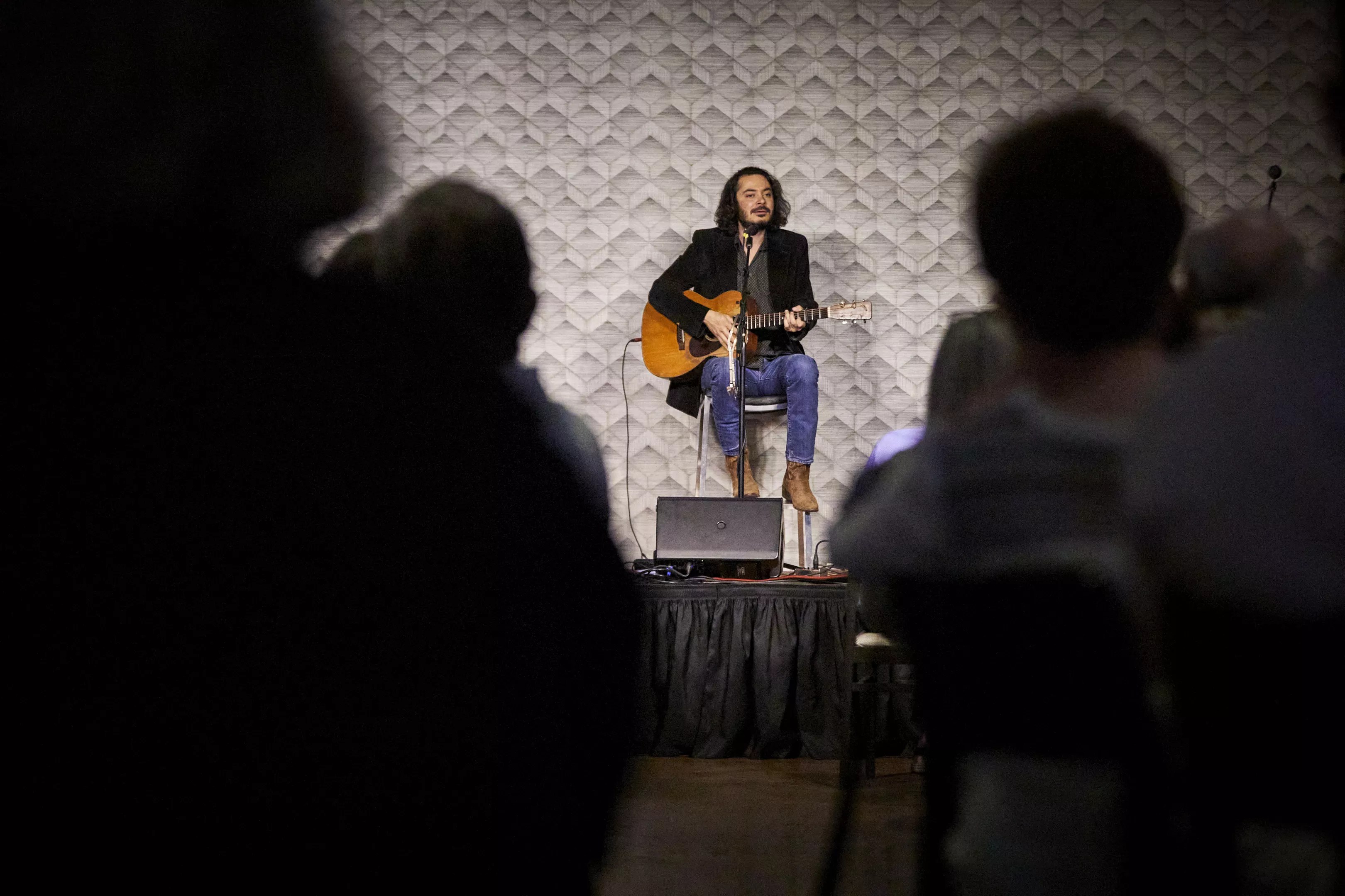 Singer Max Gomez performs at Café Momentum's monthly Sunday Supper series.