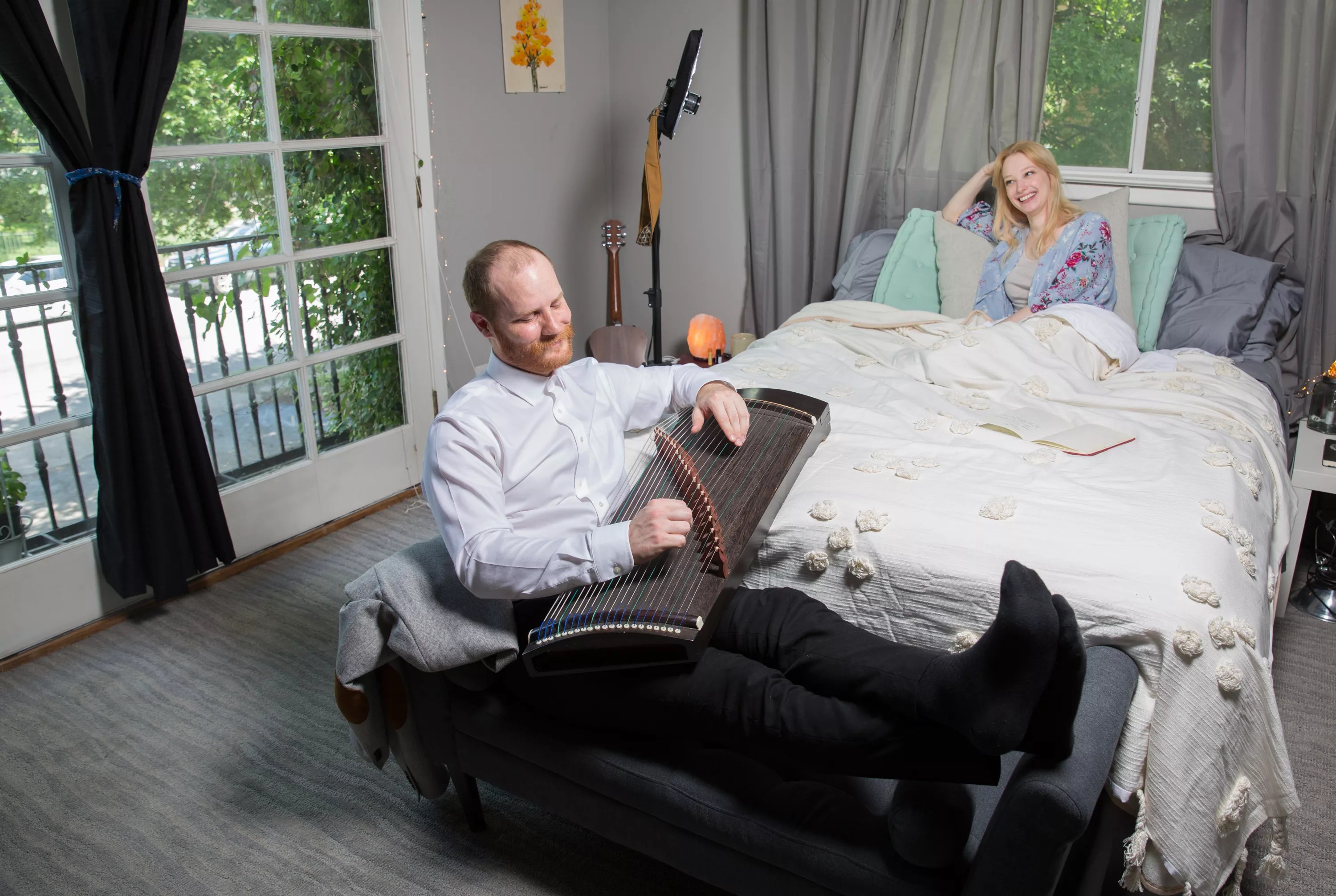 The couple spends time playing music together (Holsonback plays guitar and Metcalf is teaching her to sing), discussing art and potential business ventures.