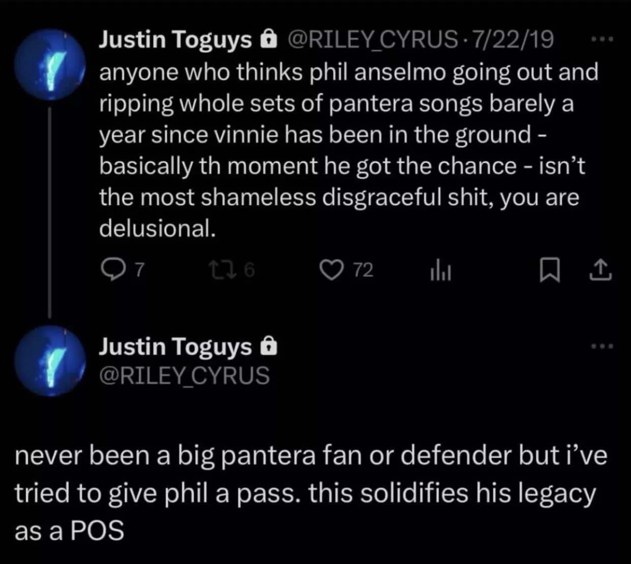 I just can't get on board with this, Dimebag and Riley would be pissed, Phil should be shunned for the n*zi salute shit