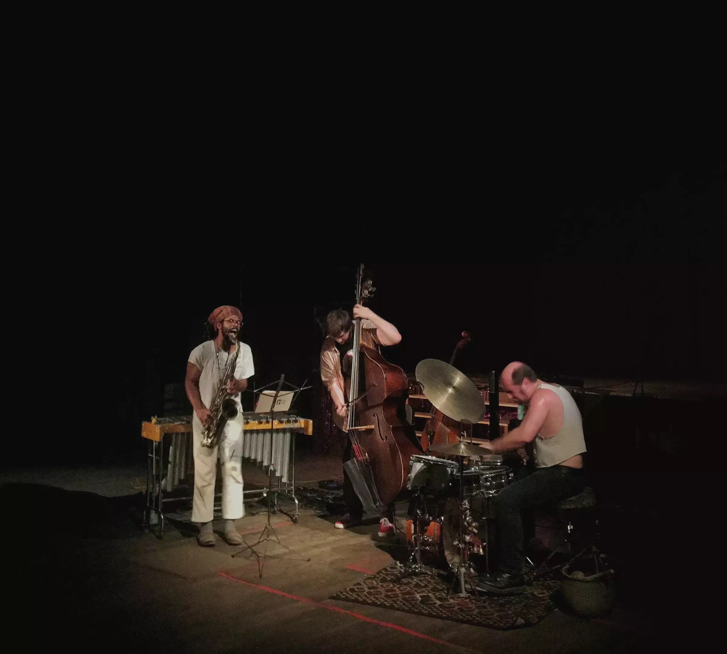 Frerck plucks all the way up the neck of his bass and the trio shifts into one of several percussive breaks, which feature Frerck swapping between plucked and bowed bass. At times, the track is bustling and chaotic, while other sections make the silence feel like an uncredited fourth player in the mix.