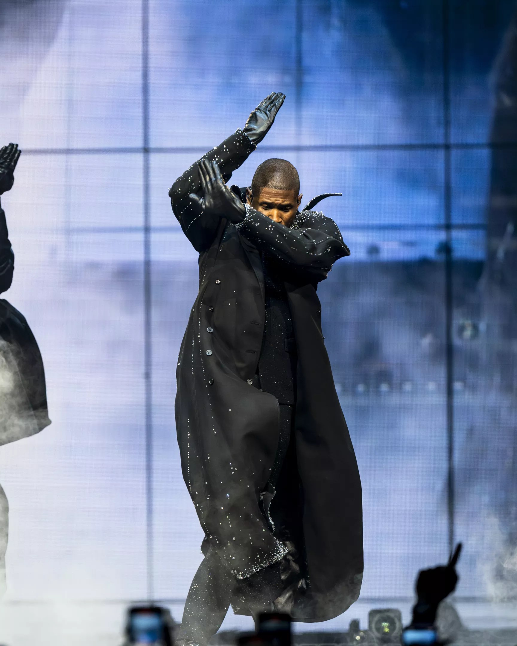 That Thursday’s performance was a smartly packaged fusion of his recent residency stint in Las Vegas and his well-received Super Bowl halftime gig from earlier this year was a given – Usher’s also been a go-for-broke pop performer for 30 years of his life, so such extravaganzas are probably something he could do in his sleep.
