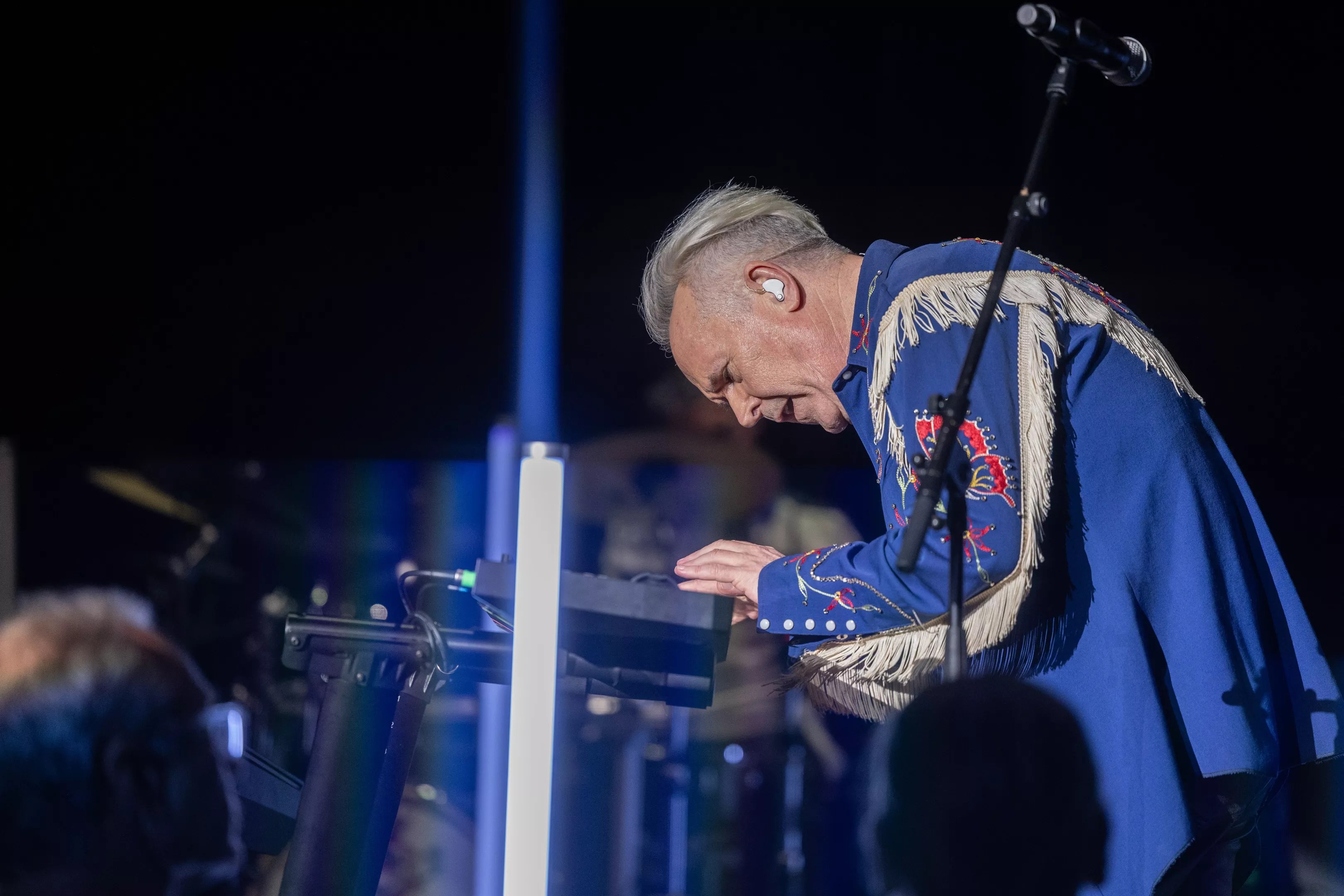 There was a touching moment when Jones introduced bassist Nick Beggs, who was a member of the band Kajagoogoo and helped write the hit “Too Shy.”
