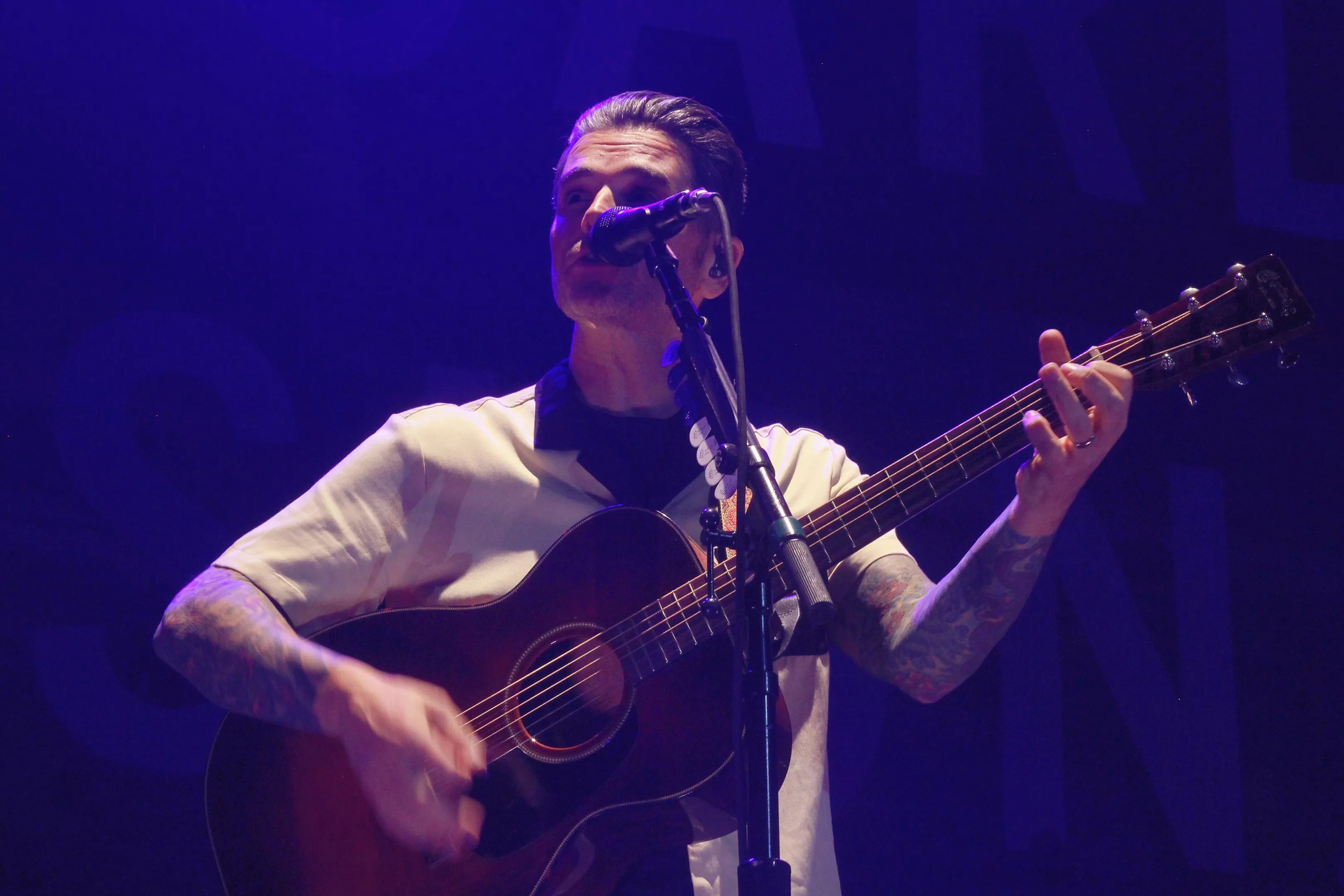 Before launching into the acoustic tune “Sympathy” from his 2002 album Gutterflower, he dropped a few f-bombs while joking about the pressure of not messing up the song. Laughing, he wisecracked, “There’s going to be 90 people on the internet saying, ‘he said the f-word a lot,’ and I’m going to be like, go listen to fucking Sabrina Carpenter. Jesus Christ, man.” Realizing he may have crossed a line, he quickly backtracked, both before and after the song, adding, “I’m sorry, she’s very talented. I just don’t want my eight-year-old daughter listening to that.” It was an odd, self-aware moment, though his comment about Carpenter’s music not being for kids felt a bit misplaced-it was clearly meant in jest.