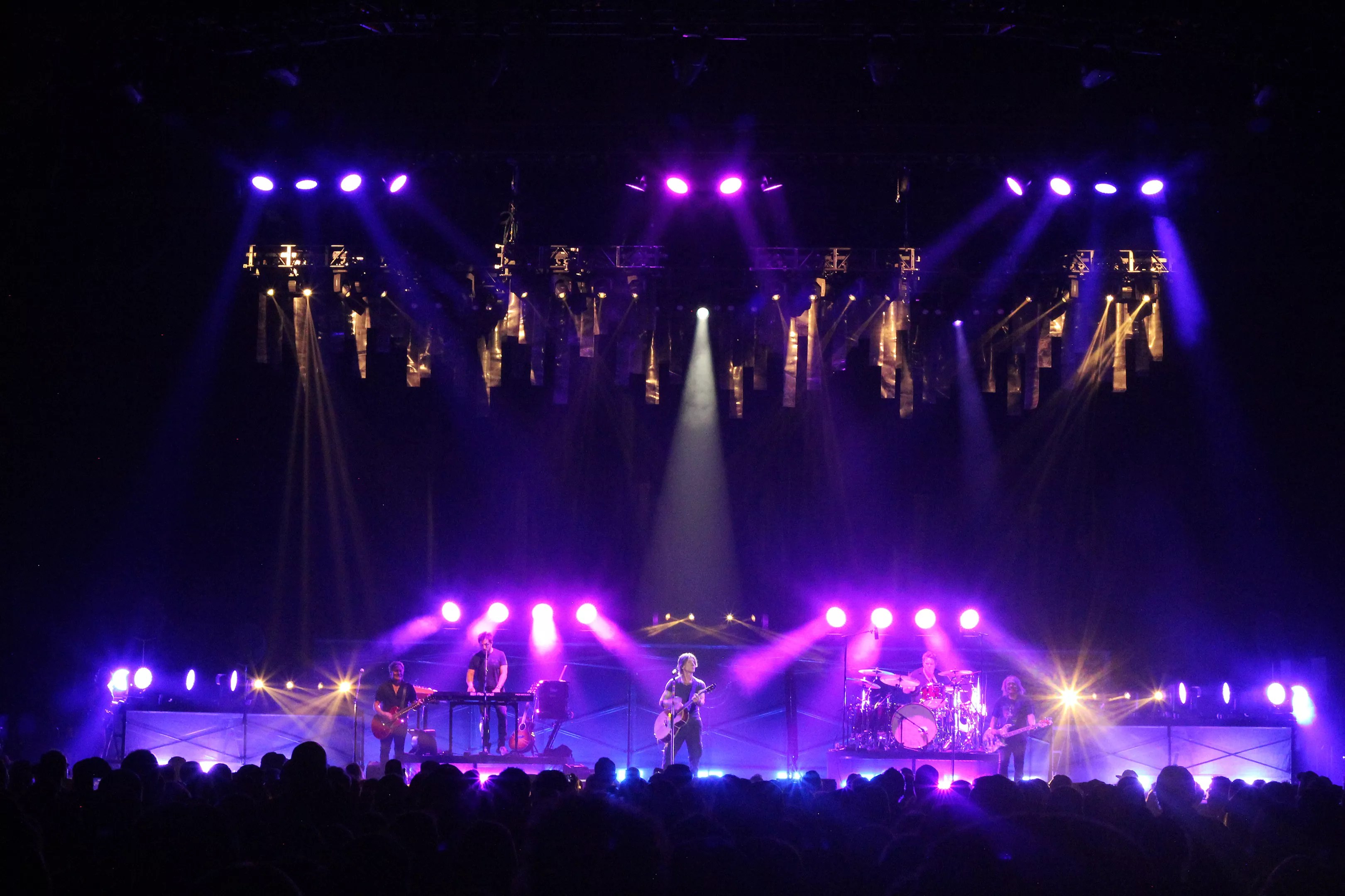 Under a cascade of purple and blue lights, the Goo Goo Dolls launch into a performance that bridges decades of hits.