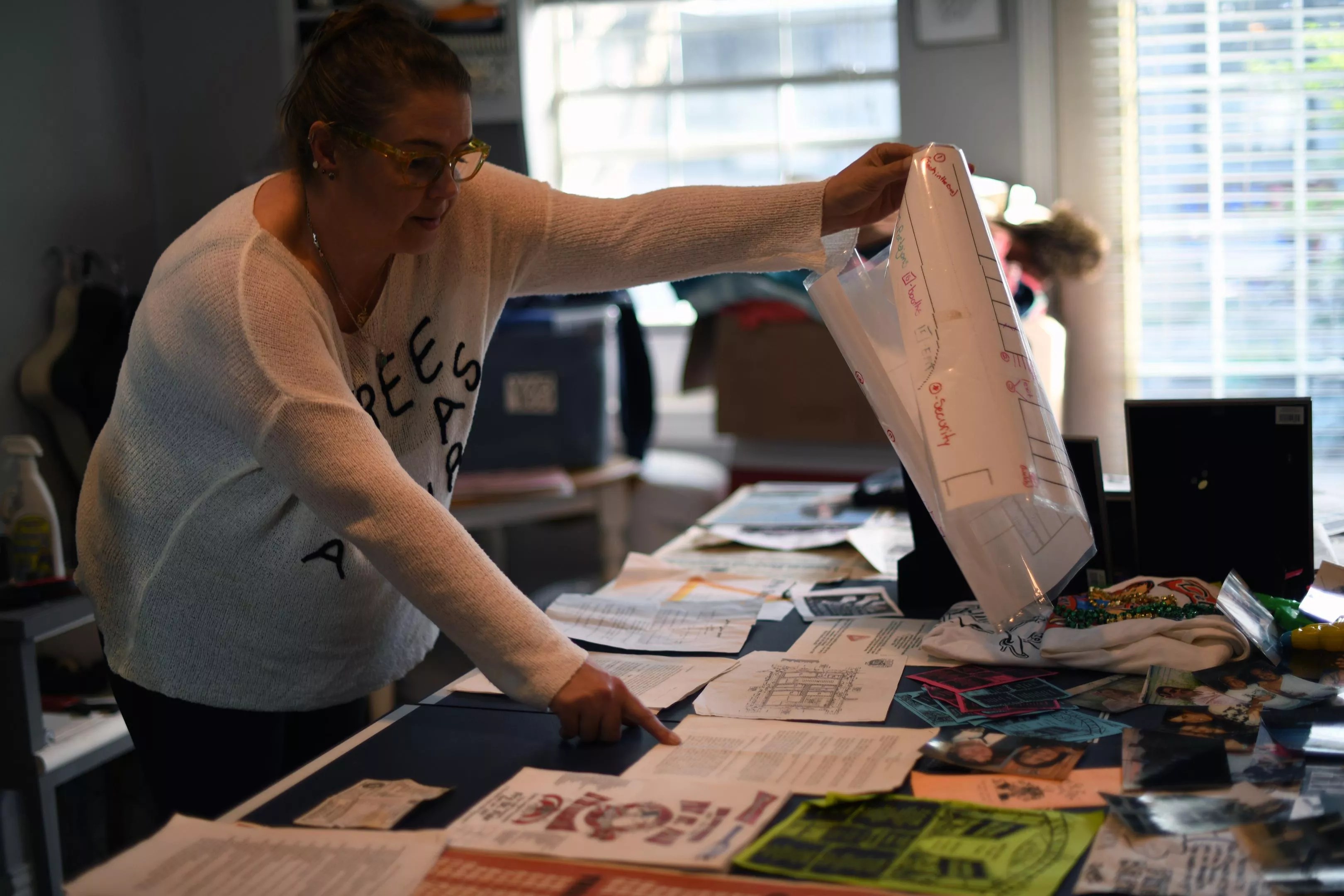 Corey Bowe, chair of the Delta Lodge board of directors, sorts through memorabilia from past Fry Street Fairs, when Delta Lodge ran the festival.
