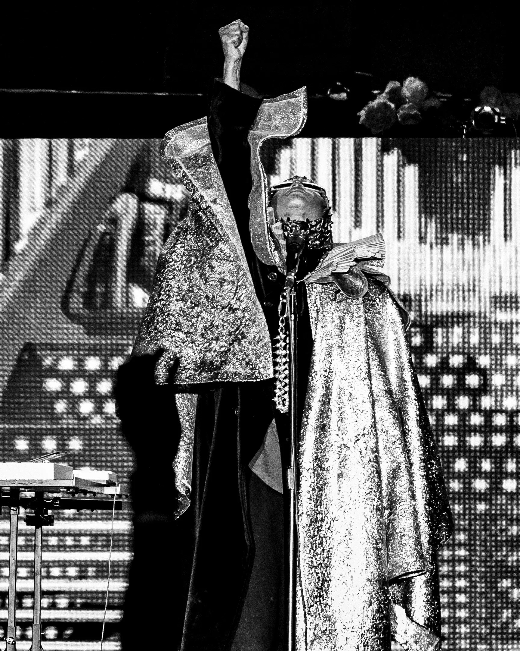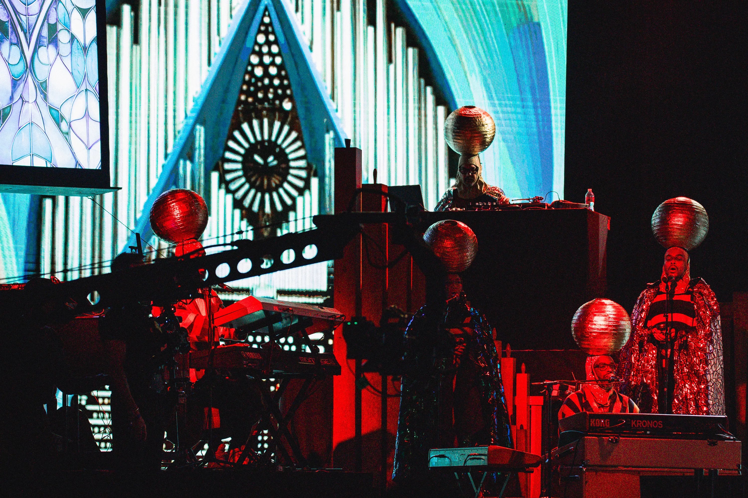 As if in a journey from the past, present and now to the post-emancipation future, a beep began to fill the air. Two stained-glass chapel windows aligned both sides of the stage, as a large pipe organ came into view. Otherworldly sounds enveloped the air as band members appeared one by one in futuristic-inspired apparel and headpieces, staying true to Badu’s fashion.