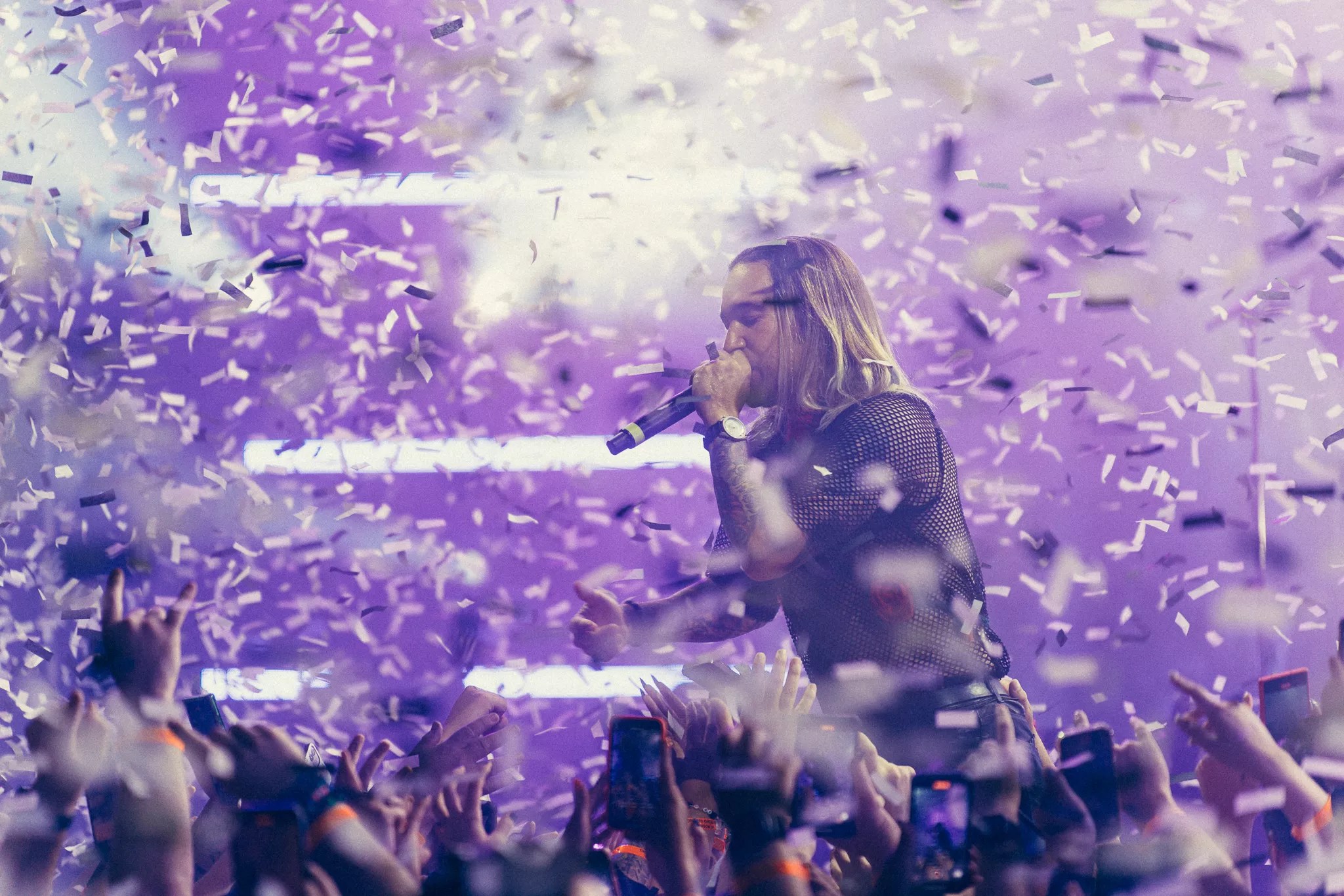 “I was told everything is bigger in Texas, does that not apply to mosh pits?” he said tauntingly, before switching his British screamo mode to “on” and demanding that we push back. The crowd happily obliged, opening up a massive mosh pit despite the “no moshing” instructions printed in all caps on every single wristband. Shout out to the venue staff who were misting fans near the barricades in a kind but futile attempt to keep everyone cool.