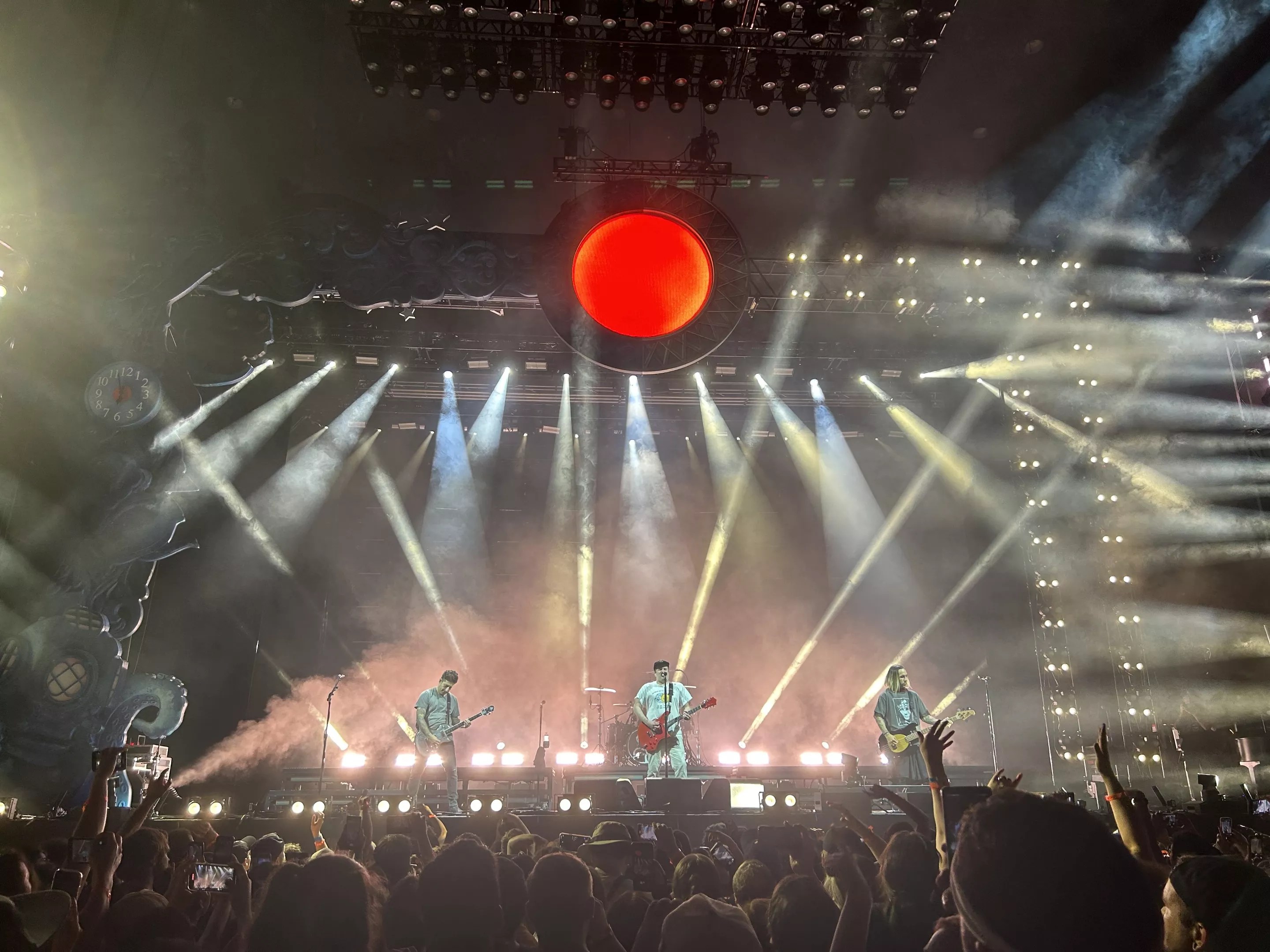The highlight of the evening came when the stage was stripped down, the backdrop dimmed and the lighting rigs lowered, creating the illusion of an intimate club reminiscent of the ones where Fall Out Boy played during their formative years. The effect was disarming and the perfect setting for a block of songs from 2003’s Take This To Your Grave, one of the most influential albums of the genre, cementing emo’s place in the mainstream music scene. Fall Out Boy’s flawless performance of their timeless anthem, “Grand Theft Autumn,” reminded us of the lasting impact of their music.